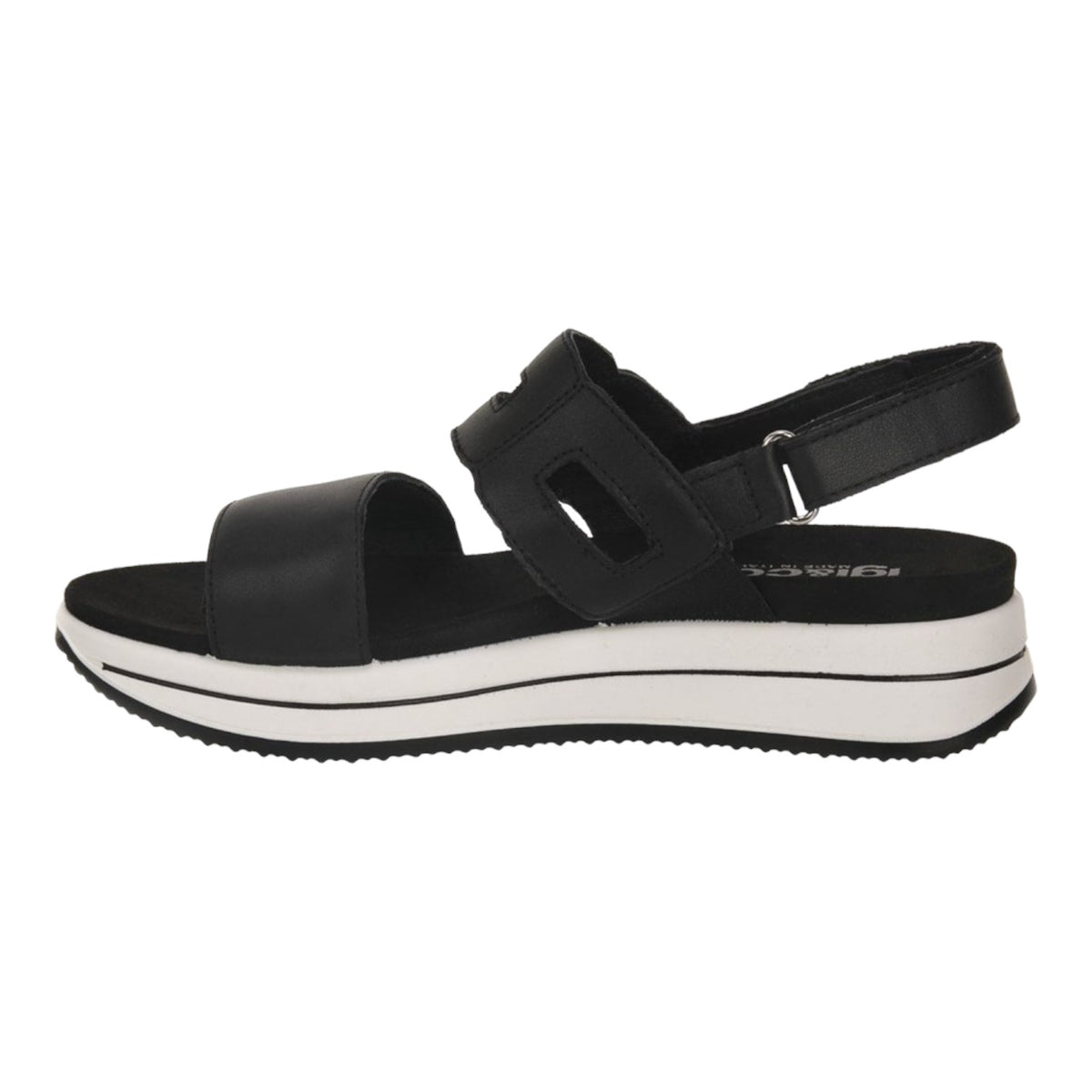 Igi&Co Sandalo Nero in Pelle con Zeppa da Donna