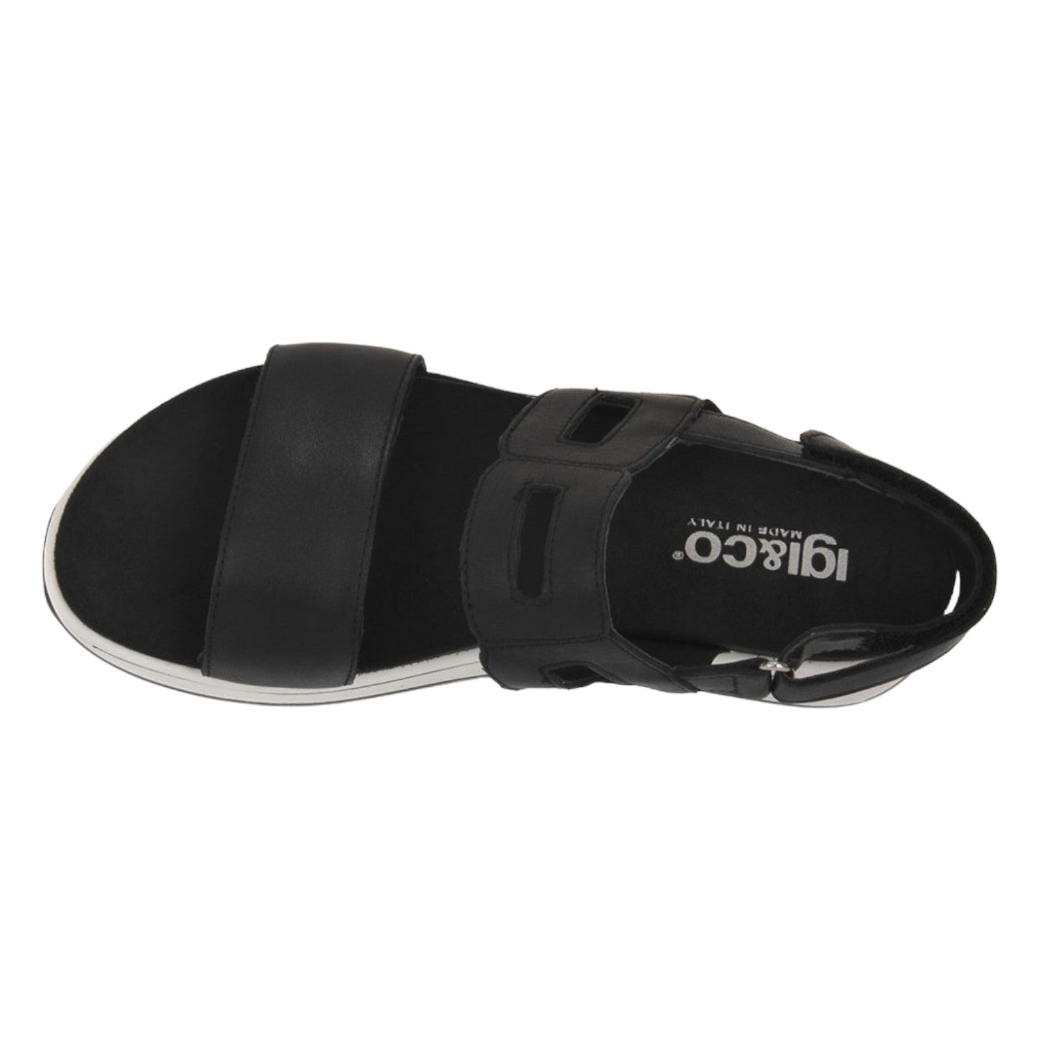 Il Sandalo firmato Igi&Co, realizzato in pelle è caratterizzato da sottopiede foderato in tessuto e da comoda suola a zeppa bianca alta 4cm che è estremamente leggera e sostiene comodamente il piede permettendo agilità nei movimenti.