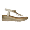 L'Infradito firmato Valleverde, realizzato in ecopelle è caratterizzato da inserto pietre dure sulle fasce e da cinturino elastico alla caviglia, sottopiede in pelle comfort foam. Presenta una zeppetta di 5cm con fondo in gomma.