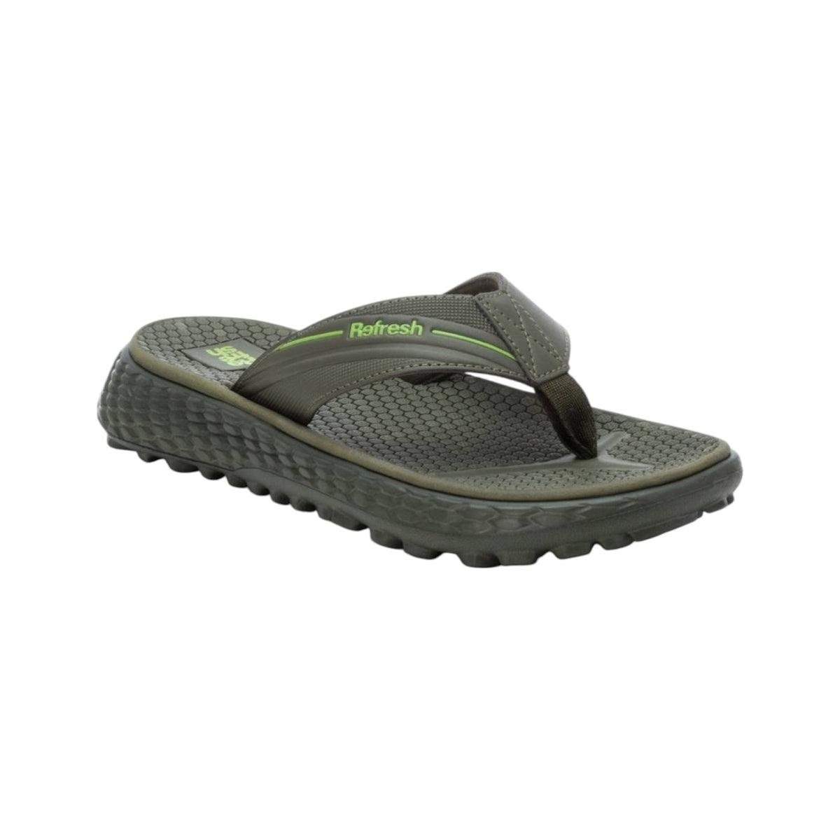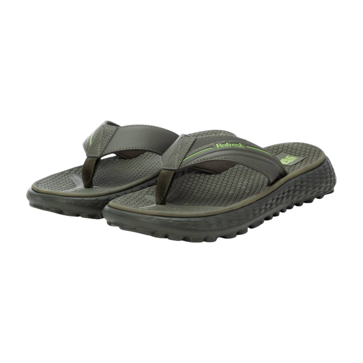 L'Infradito firmato refresh, realizzato interamente in gomma qui proposto nella variante kaki è caratterizzato da logo inciso sulla fascetta e da comodo plantare ammortizzante, inoltre presenta una suola dentata in gomma.