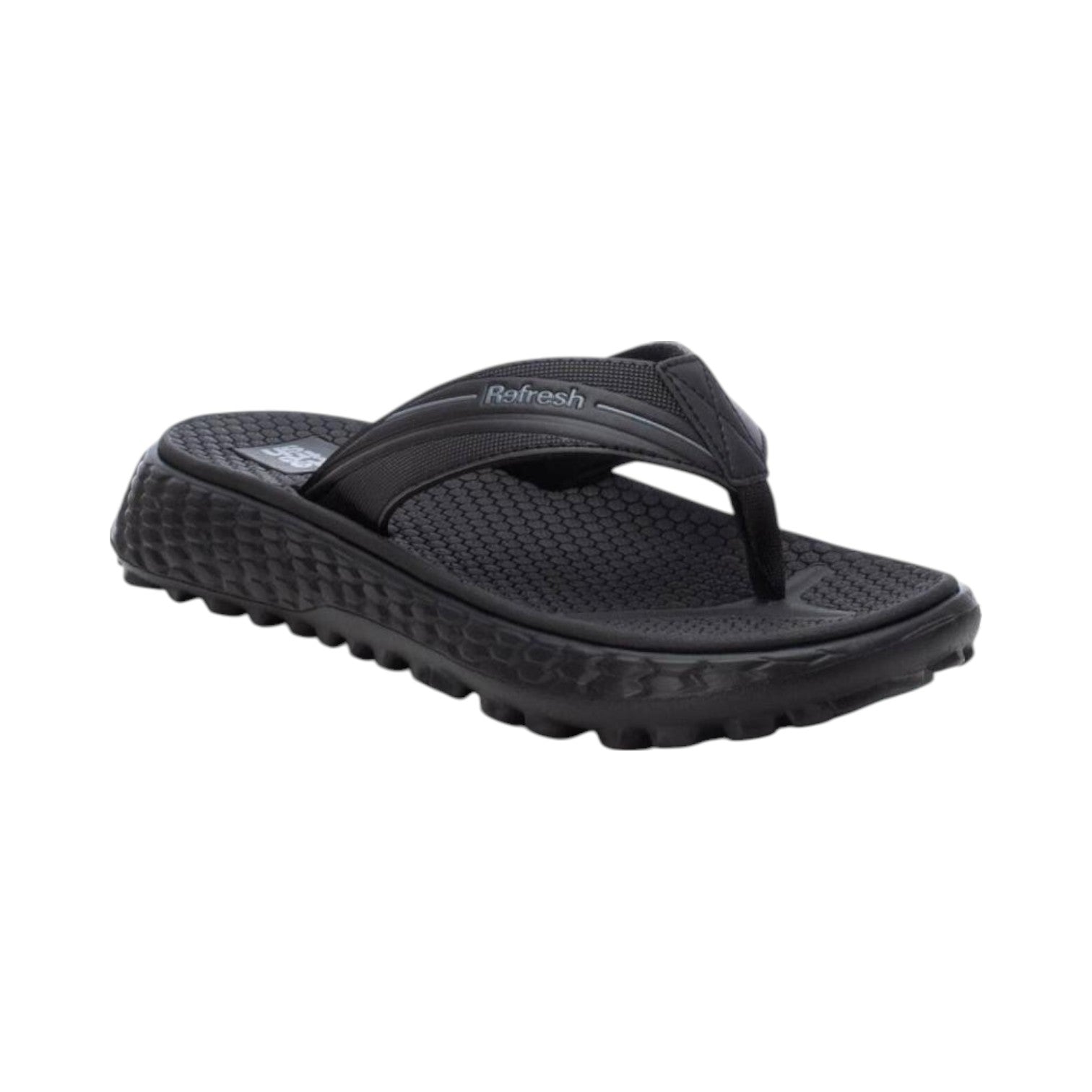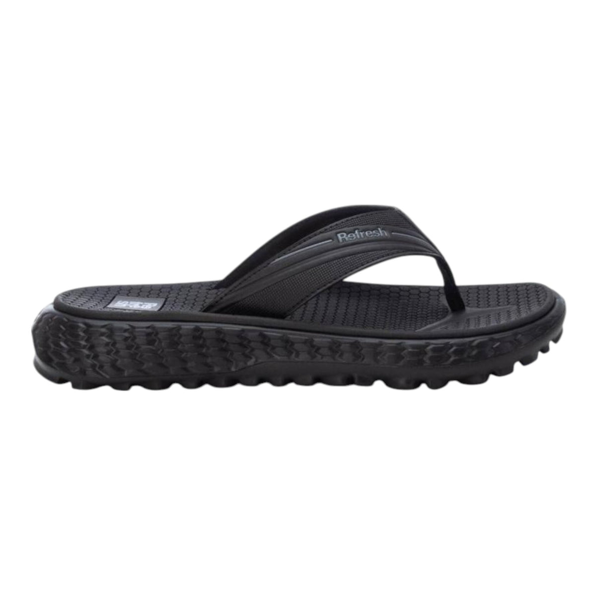 L'Infradito firmato refresh, realizzato interamente in gomma qui proposto nella variante nera è caratterizzato da logo inciso sulla fascetta e da comodo plantare ammortizzante, inoltre presenta una suola dentata in gomma.