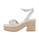 Il Sandalo firmato Janet&Janet, combinano pelle burro e suede per un gioco di texture elegante. Il dettaglio intrecciato sul davanti aggiunge un tocco distintivo, mentre il tacco scolpito assicura stabilità e stile.