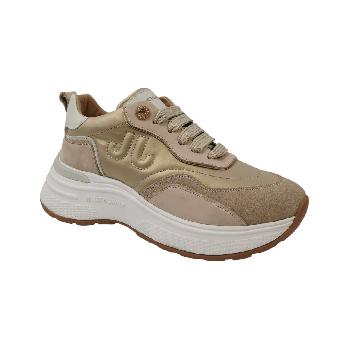 Janet&Janet Sneakers Donna in Pelle e Camoscio Beige
