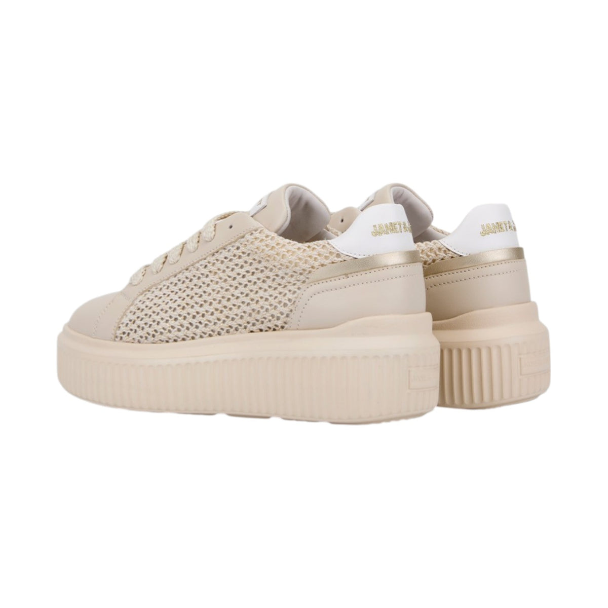 Janet&Janet Sneakers Donna Platform in Pelle e Tessuto Traforato Beige Bianco