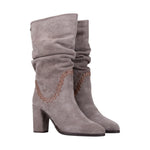 Janet&Janet Stivale Donna in Camoscio Tortora con Tacco Largo Alto 80mm