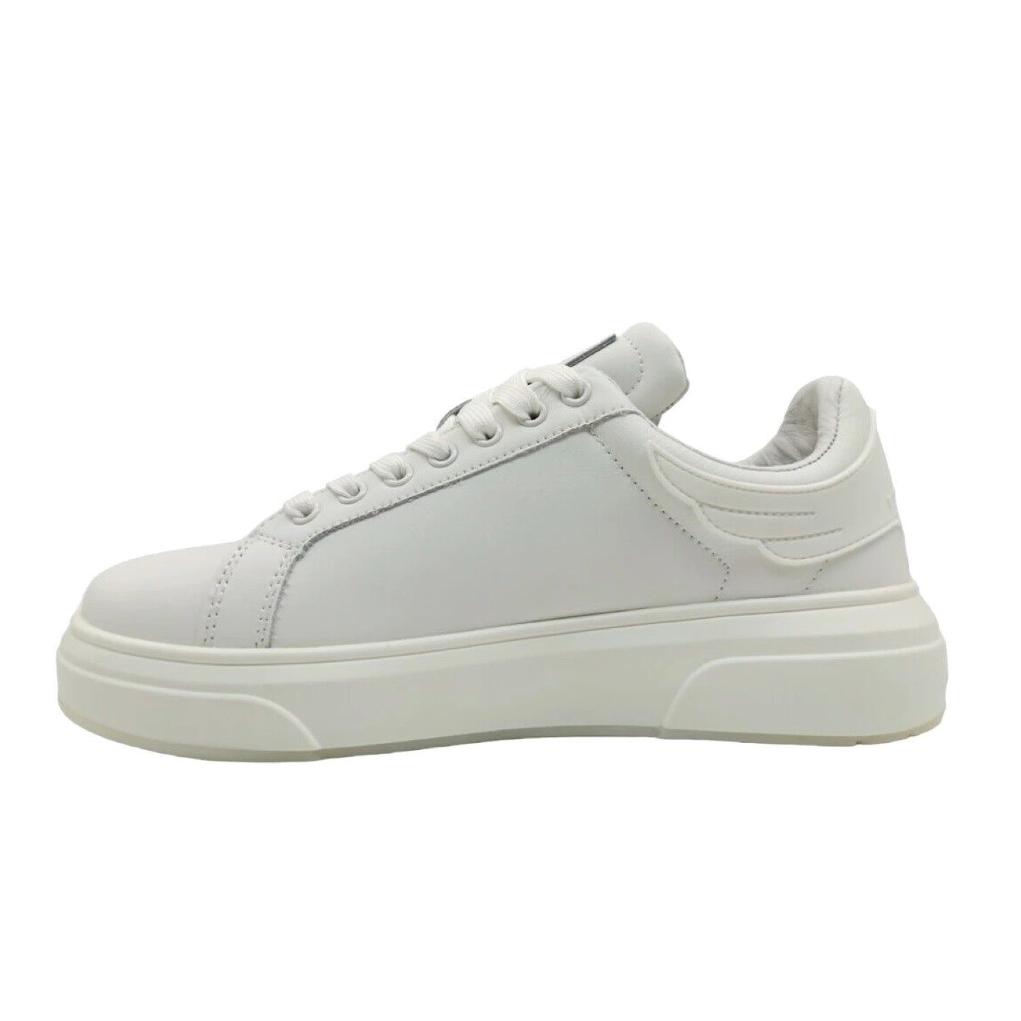 La Sneaker firmata John Richmond, realizzata in morbida pelle è caratterizzata dalla suola in gomma impresso il logo identificativo del brand, sui lacci dispone di logo applicato su targhetta argentata. L'interno è foderato in tessuto con plantare in pelle estraibile.