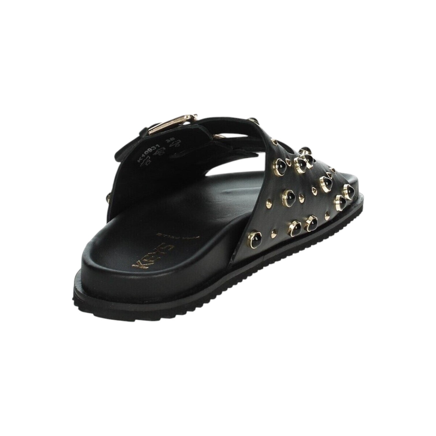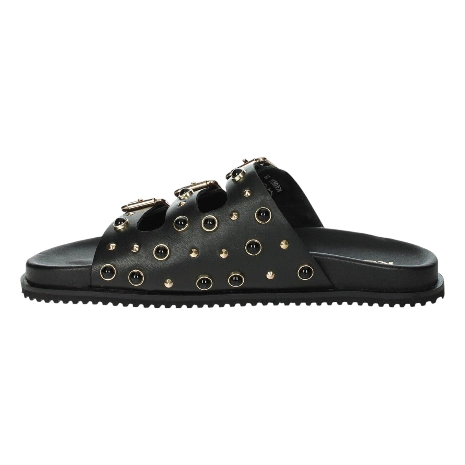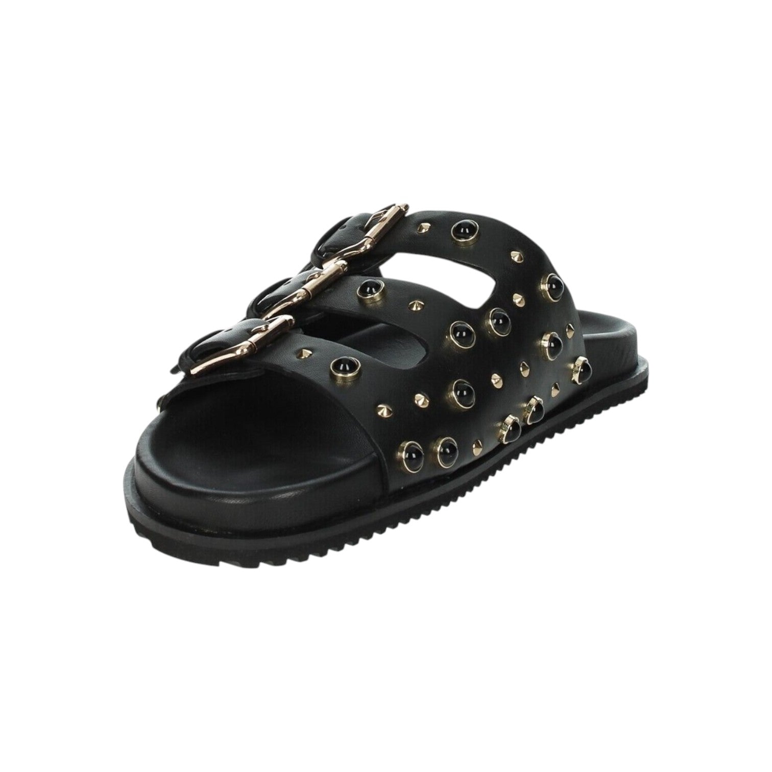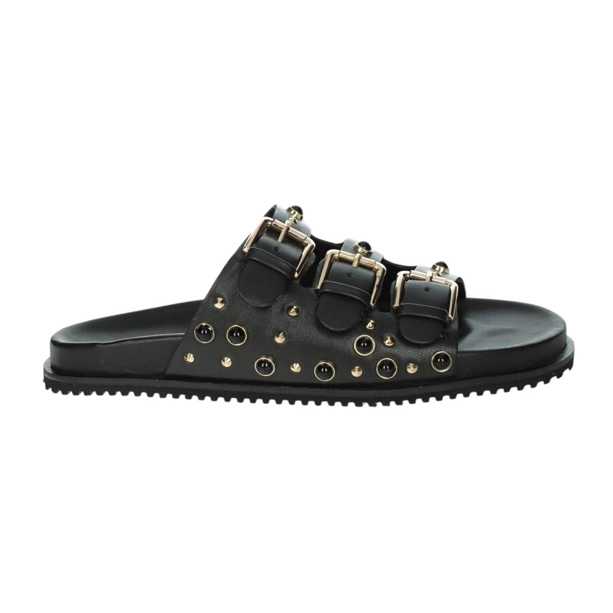 Keys Ciabatta Donna Nera in Pelle con Fibbie e Borchie