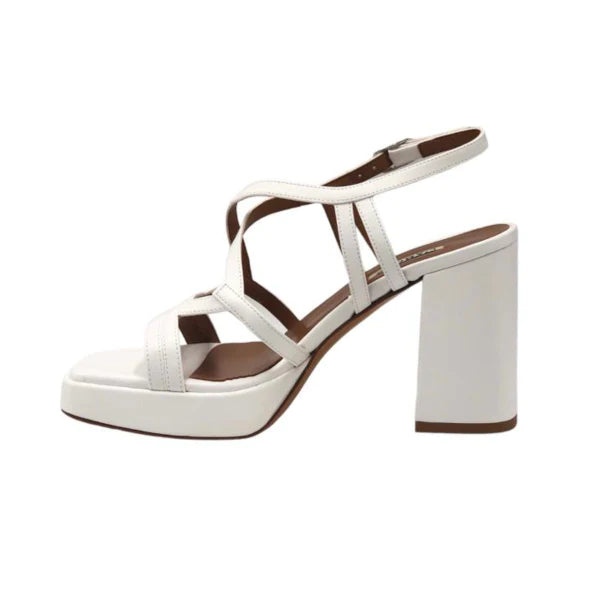 Il Sandalo della linea L'Amour by Albano, realizzato in similpelle dispone di cinturino regolabile, con listini sottili con intrecci geometrici. Un comodo plateau e suola in vero cuoio.
