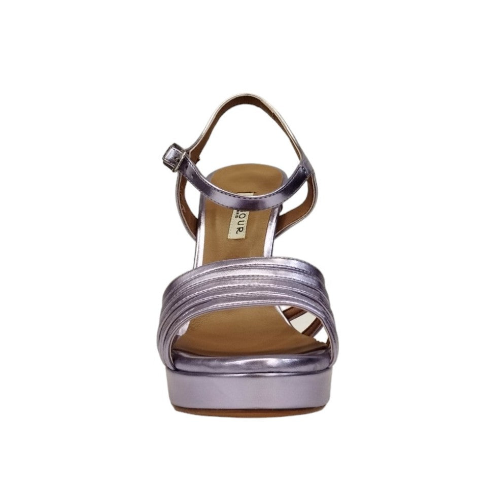 L'Amour by Albano Sandalo laminato lilla tacco 13 plateaux