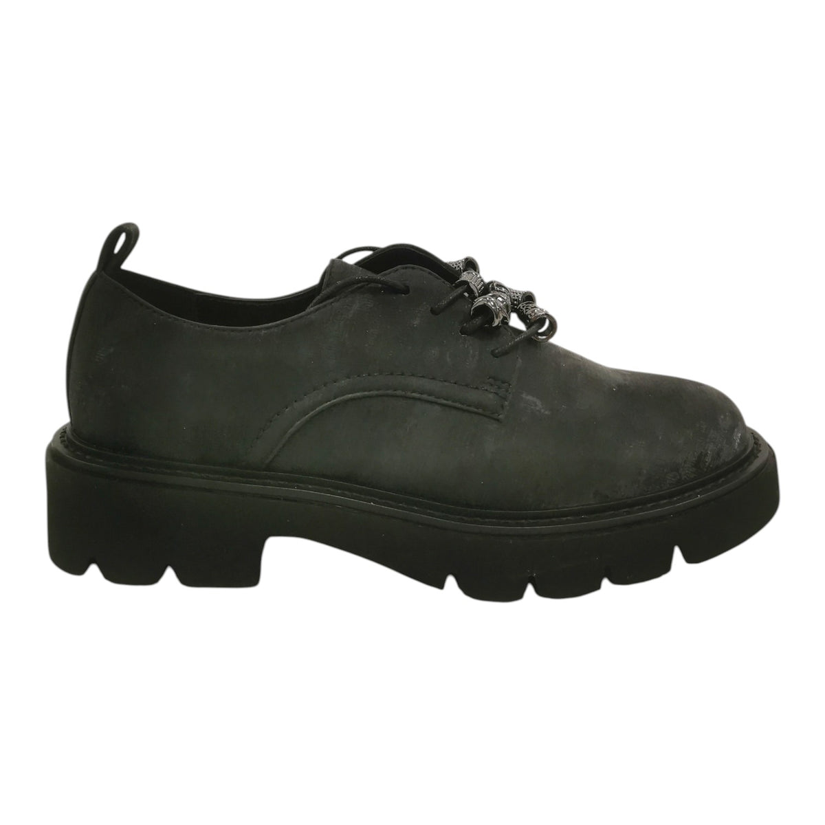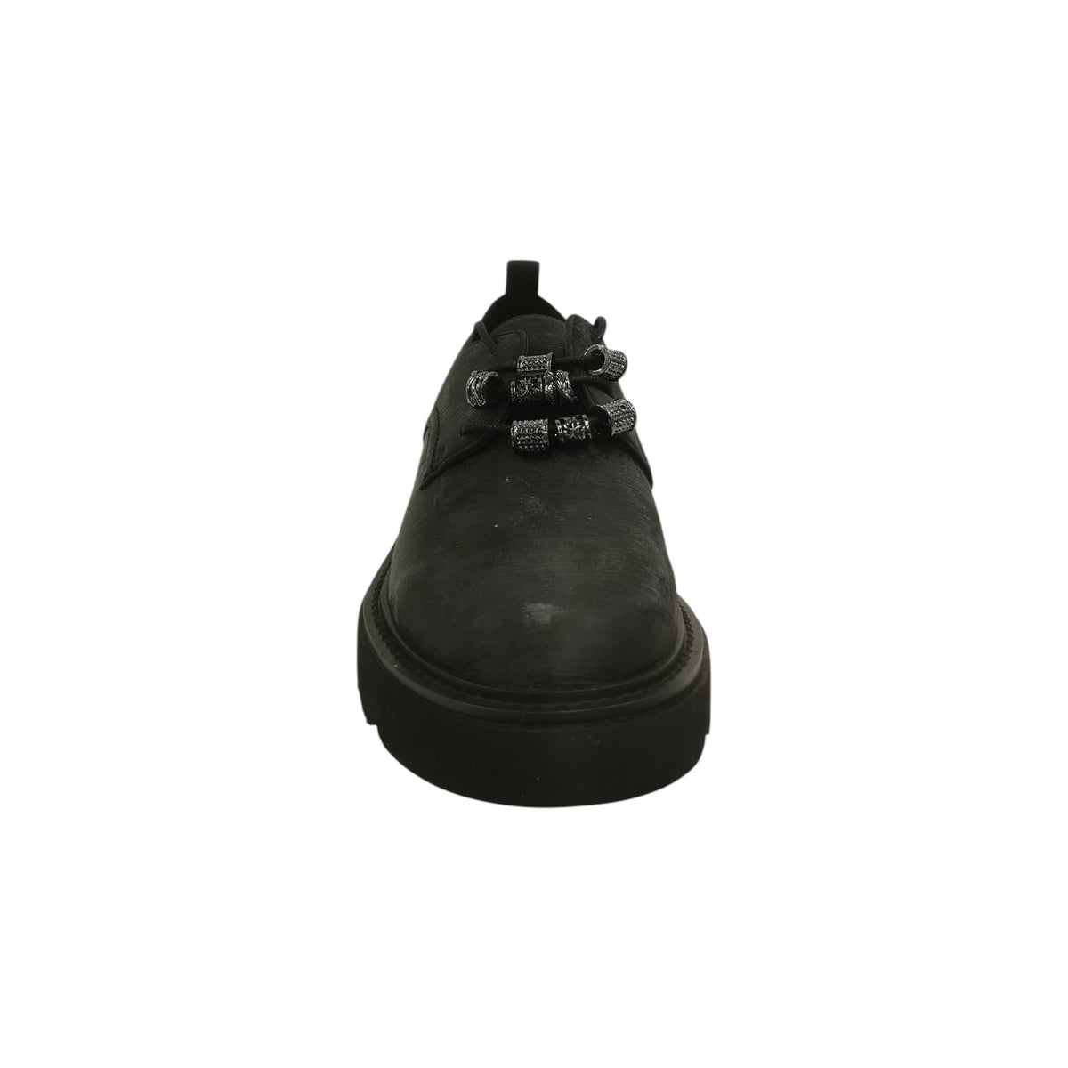 L'Allacciato firmato Luciano Barachini, realizzato in tessuto qui proposta nella variante nera è caratterizzata da una punta arrotondata super moderna e casual con applicazione di accessori sui lacci. L'interno è foderato in pelle per offrire una comoda calzata.
