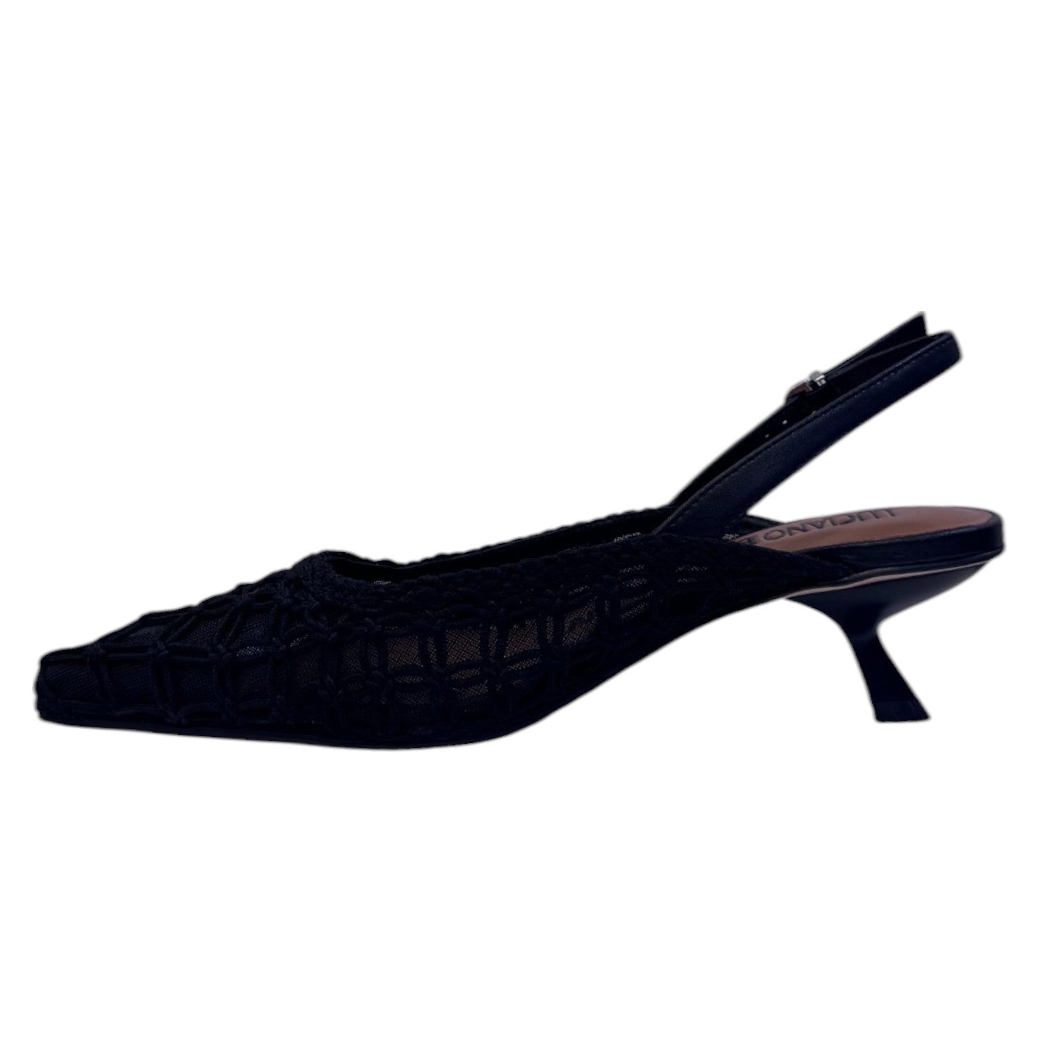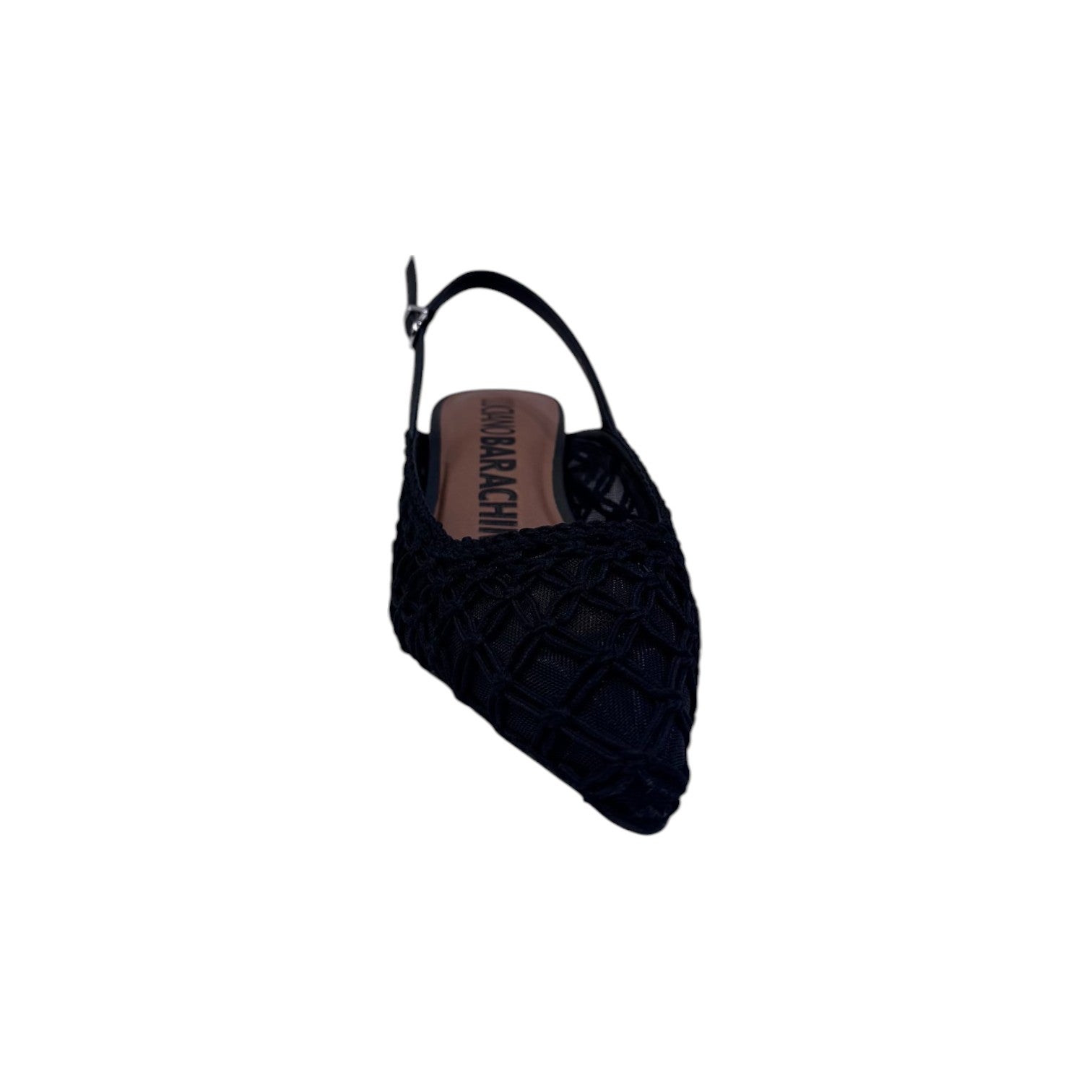 La Chanelle firmata Luciano Barachini, modello aperto dietro realizzato con una unta a rete ed intreccio sopra in tessuto caratterizzato da comodo plantare imbottito in pelle. Il tacco a rocchetto di 4cm ti permette di camminare comodamente.