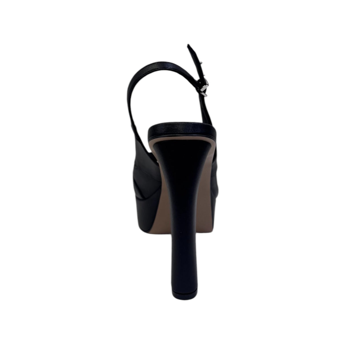 Il Sandalo firmato Luciano Barachini, realizzato in pelle qui proposto nella variante nera è caratterizzato da un tacco alto di 11cm accompagnato da un plateau di 3cm, presenta un comodo plantare imbottito in pelle.