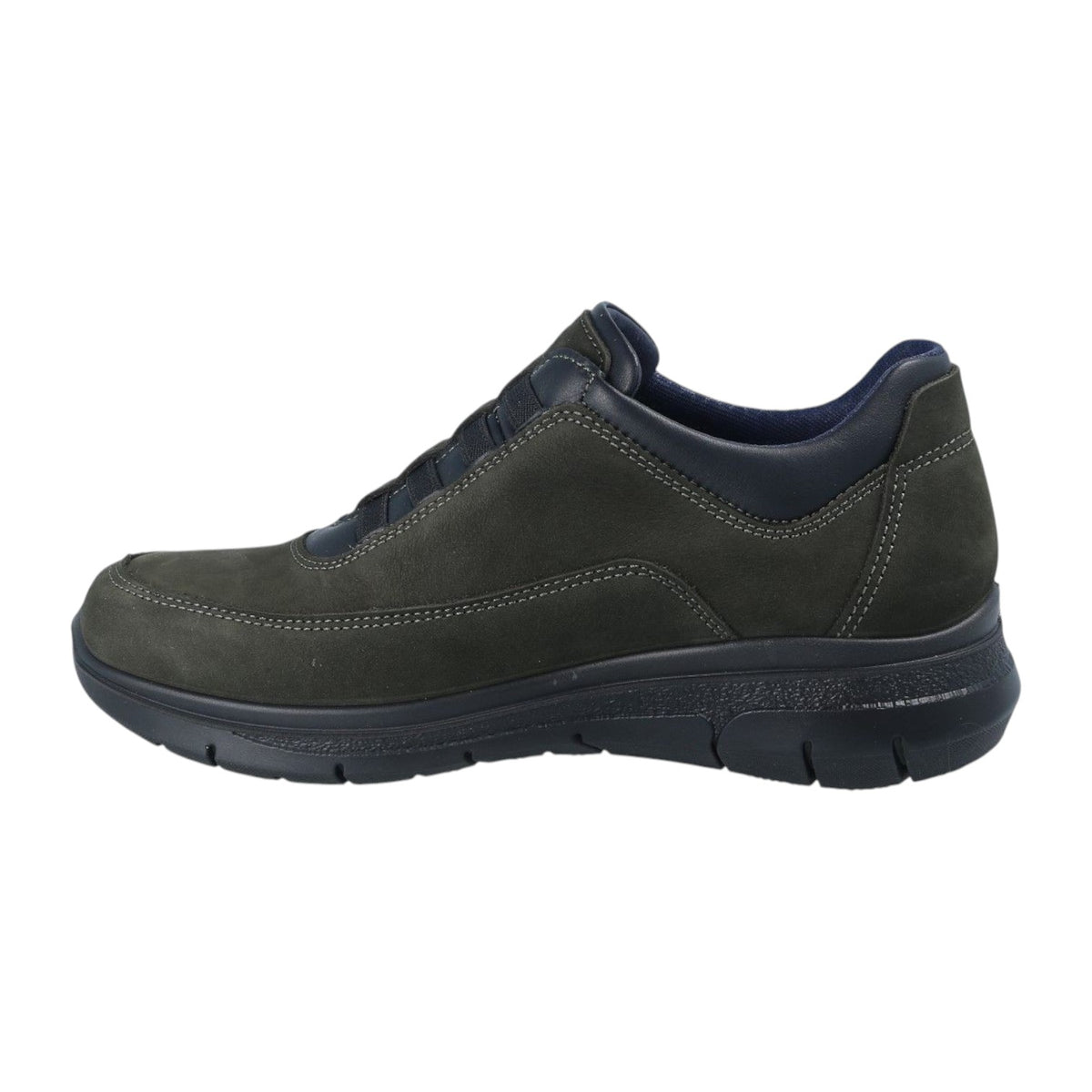 Lo Slip on firmato Luisetti, realizzato in pelle 100% naturale con finitura nabuck goffrata è caratterizzata da suola ultraleggera e ammortizzante, realizzata in poliuretano e realizzata con uno speciale sistema di iniezione diretta, e da fodera tessile di ultima generazione, anallergica, traspirante, antibatterica e traspirante, con schiuma termica, ideale per l'inverno.