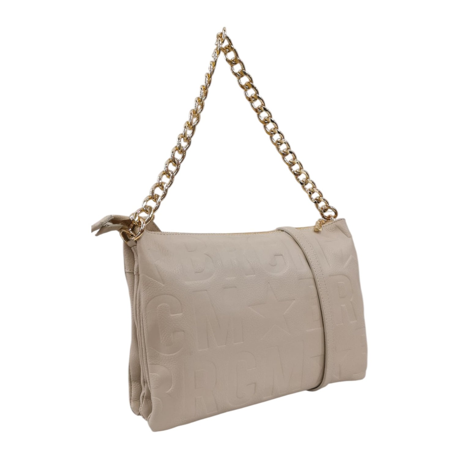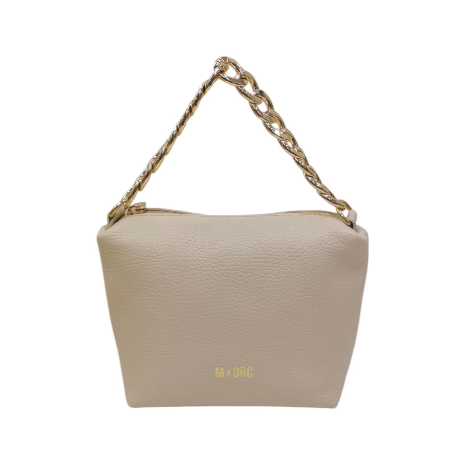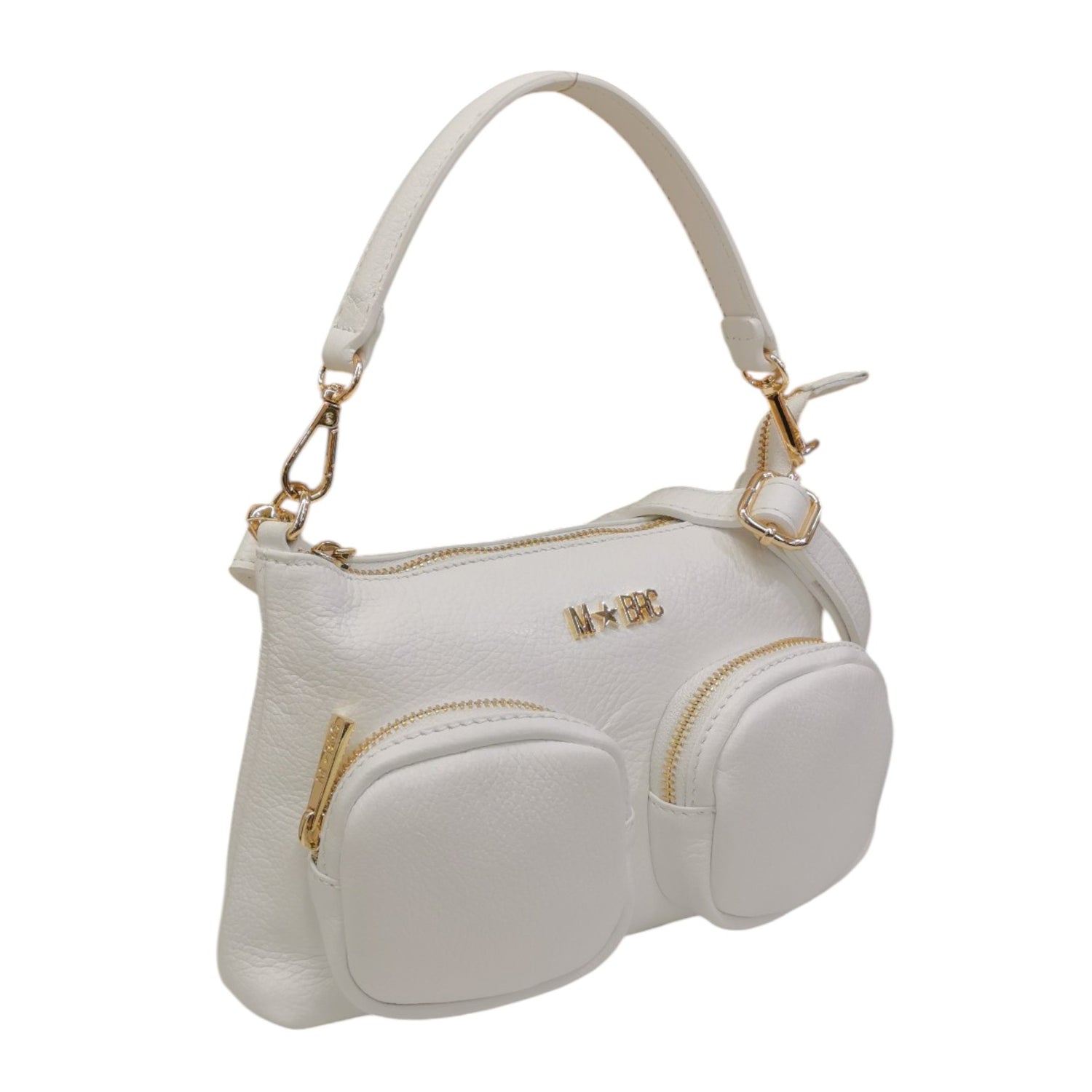 La Borsa a spalla firmata M Brc, della Linea Piuma realizzata in pelle di alta qualità con chiusura superiore a zip. Da indossare a spalla oppure per un look più casual e dinamico basta agganciare la tracolla lunga regolabile. Presenta un manico removibile e interno è foderato in tessuto con taschino con zip.