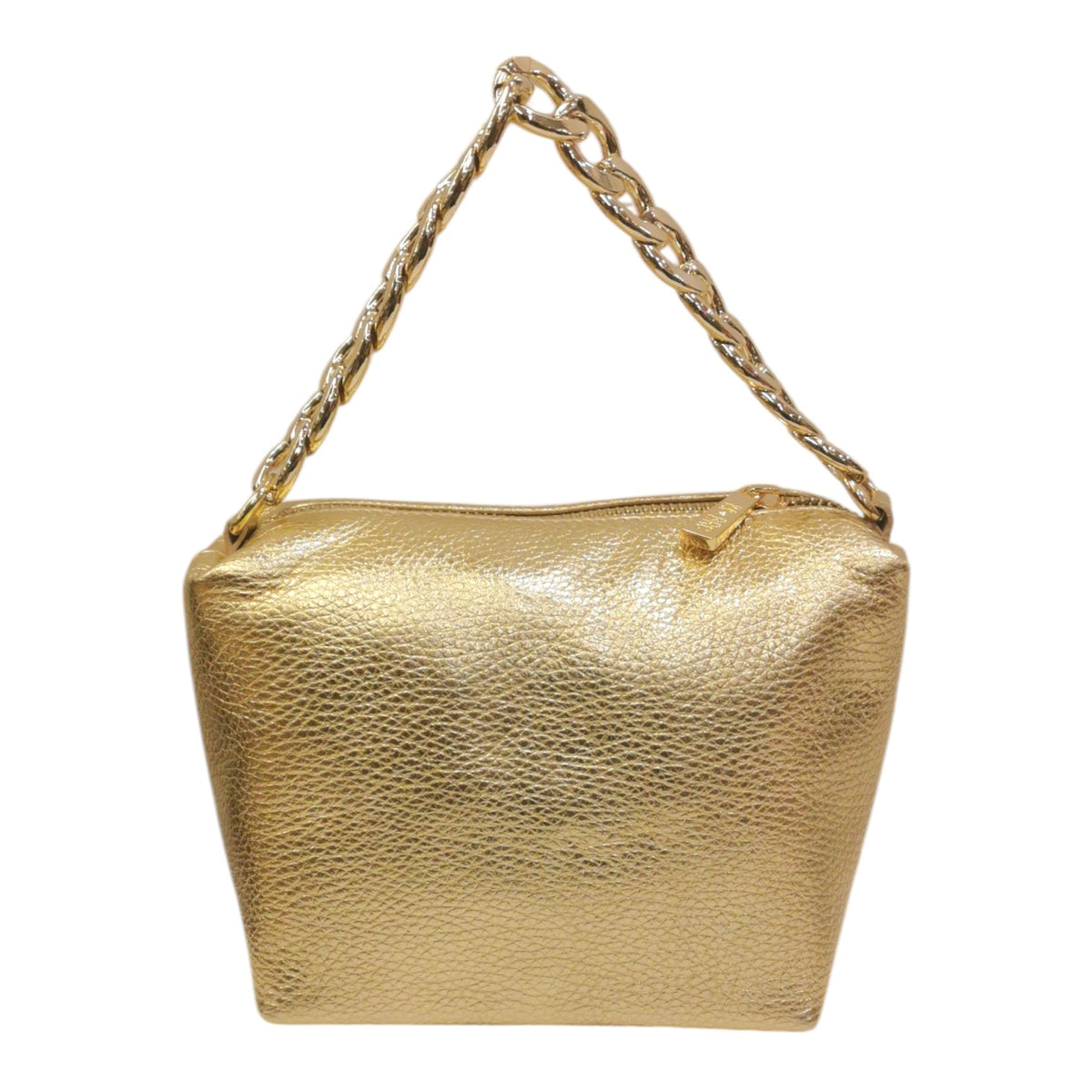 La Borsa a mano firmata M Brc, della Linea Jolly realizzata in vera pelle martellata è caratterizzata da manico a catena dorata, presenta l'interno foderato in tessuto di cui non possiede tasche con zip.