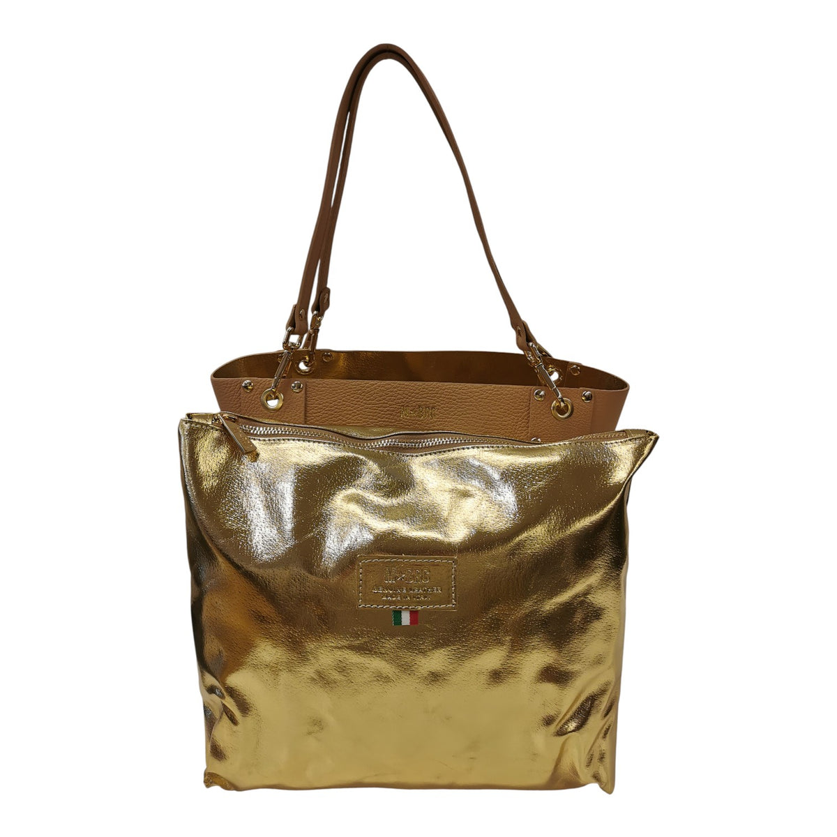 M Brc Borsa a Spalla Media Donna Linea Square in Pelle Cammello con Pochette