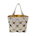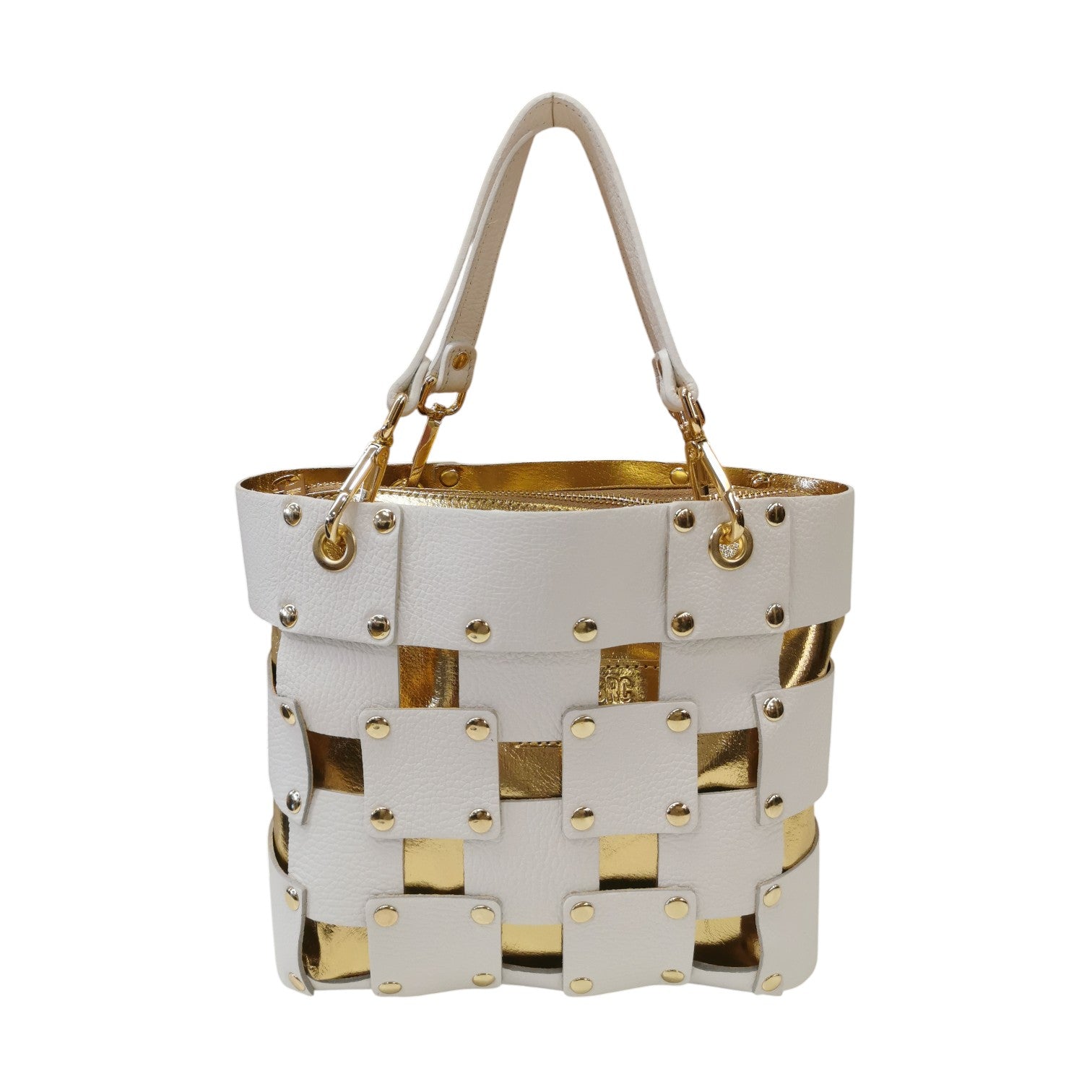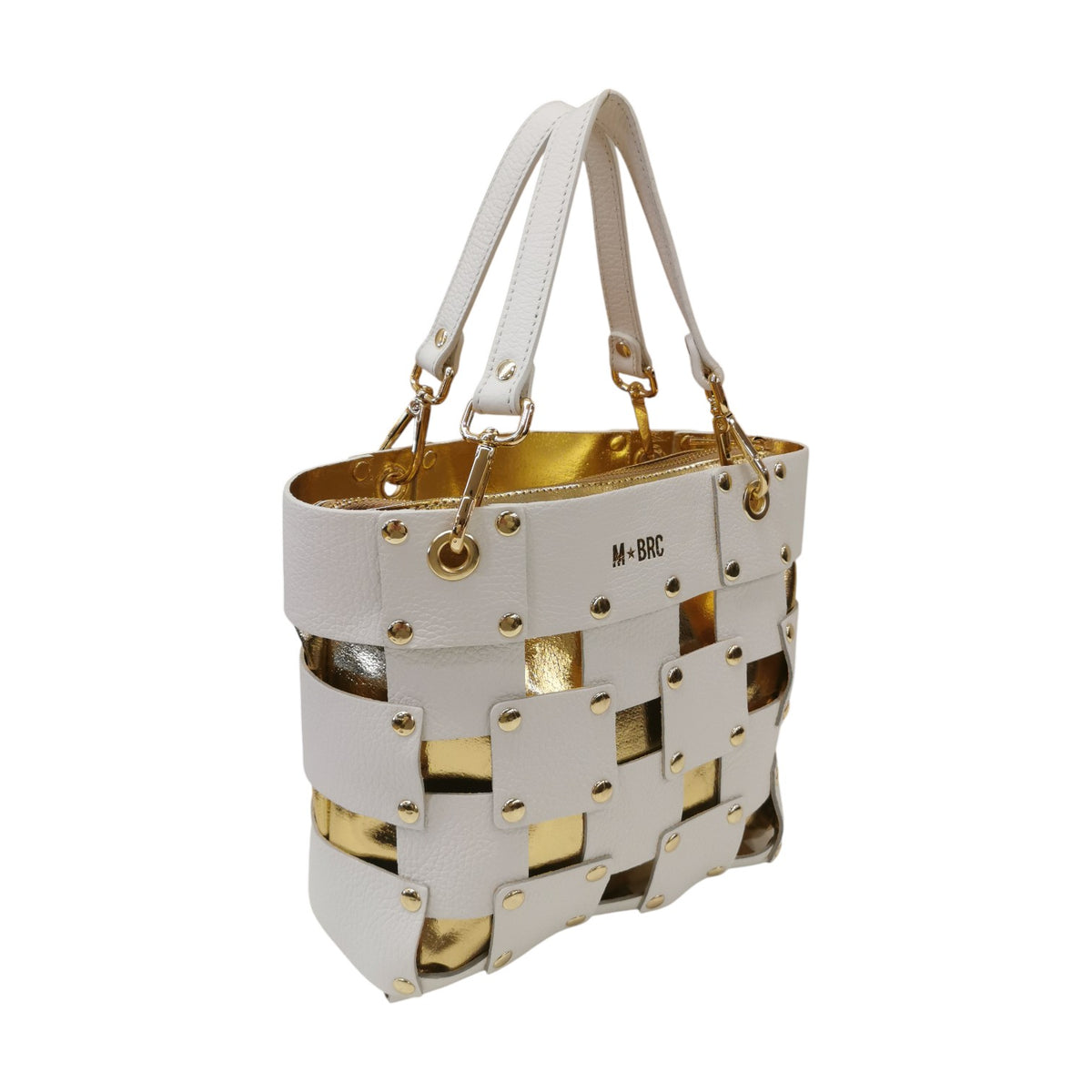 La Borsa a spalla firmata M Brc, della Linea Square realizzata in pelle bianca presenta una sofisticata trama traforata squadrata arricchita da borchiette dorate che catturano lo sguardo. I manici removibili offrono massima flessibilità d'uso, permettendoti di trasformare lo stile secondo l'occasione. L'interno completamente rivestito in pelle garantisce durabilità e protezione, mentre la pochette grande in pelle removibile ti consente di organizzare gli spazi con eleganza.