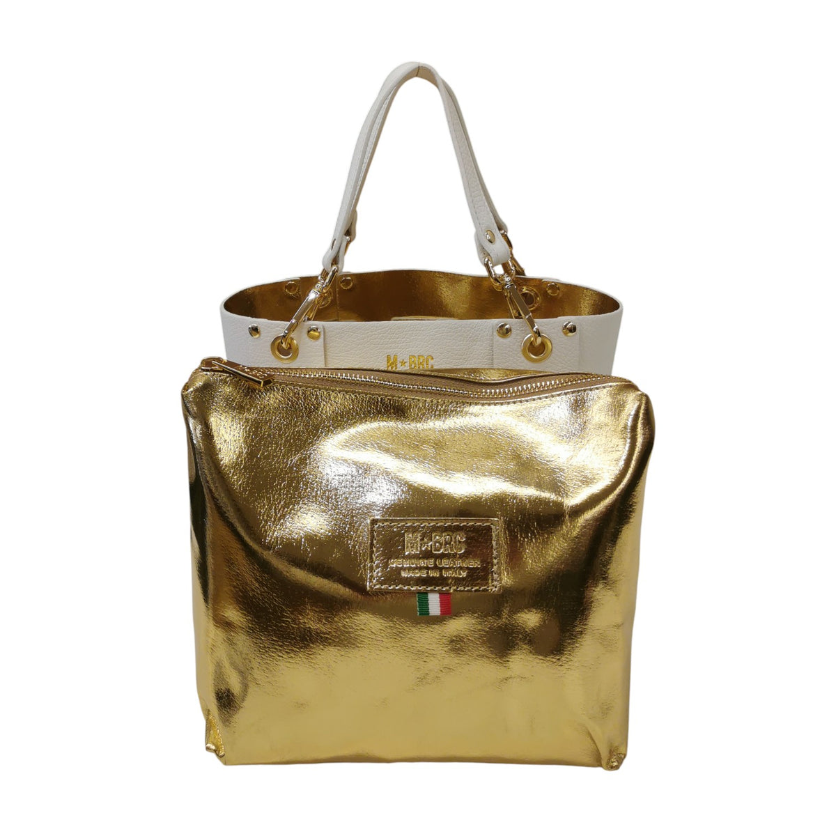 M Brc Borsa a Spalla Piccola Donna Linea Square in Pelle Bianca con Pochette