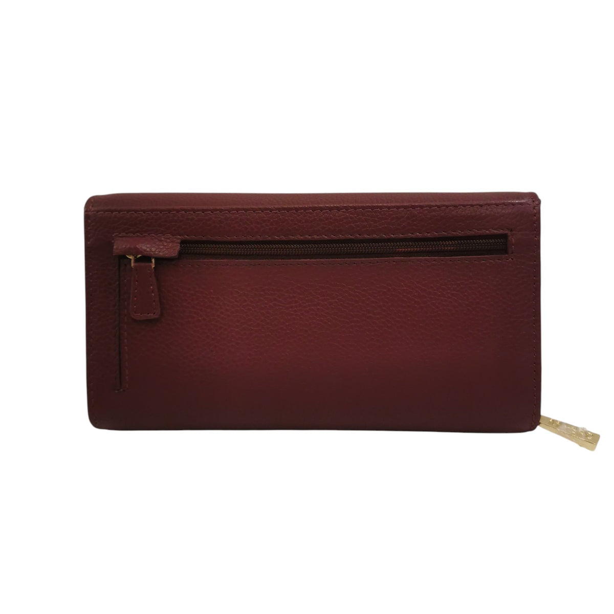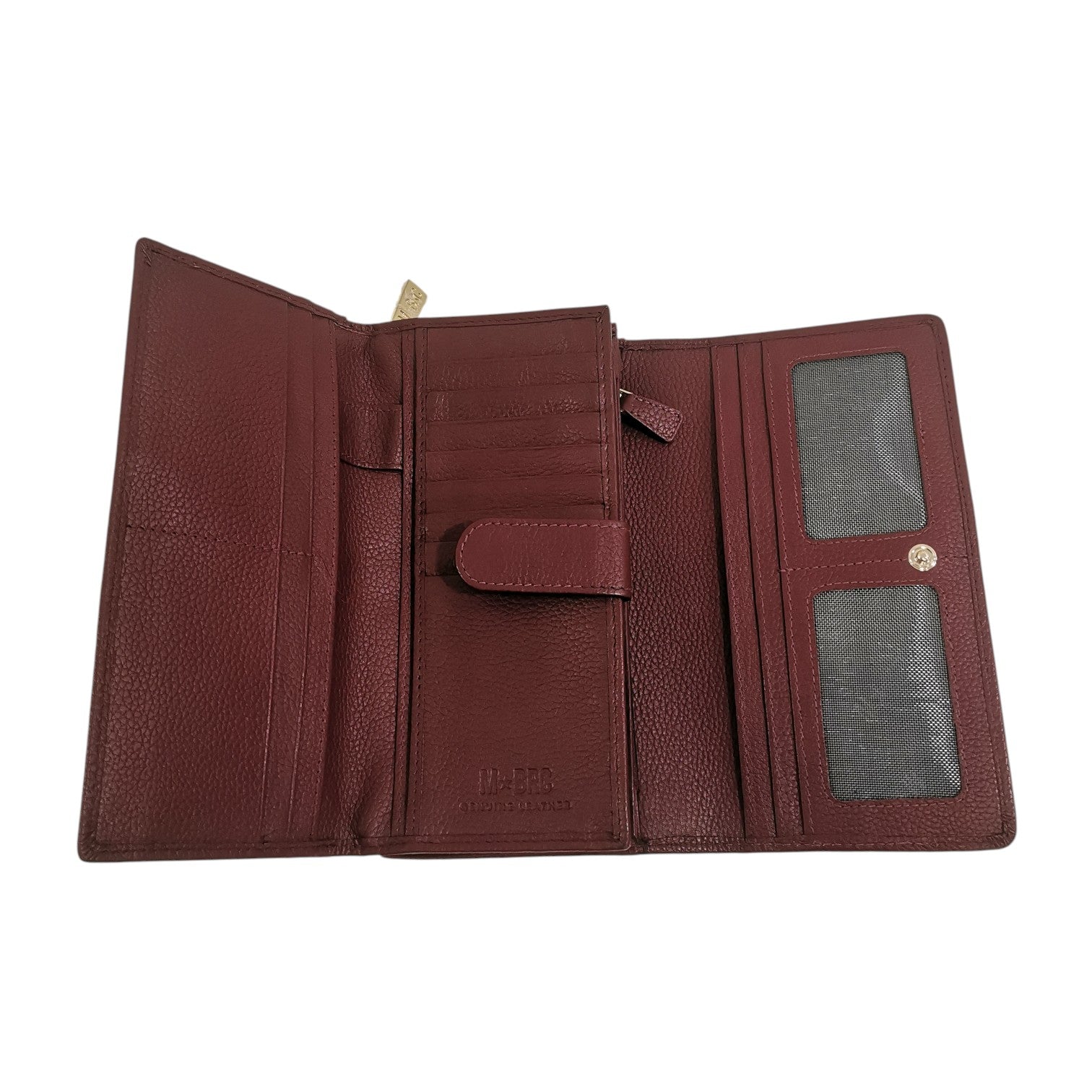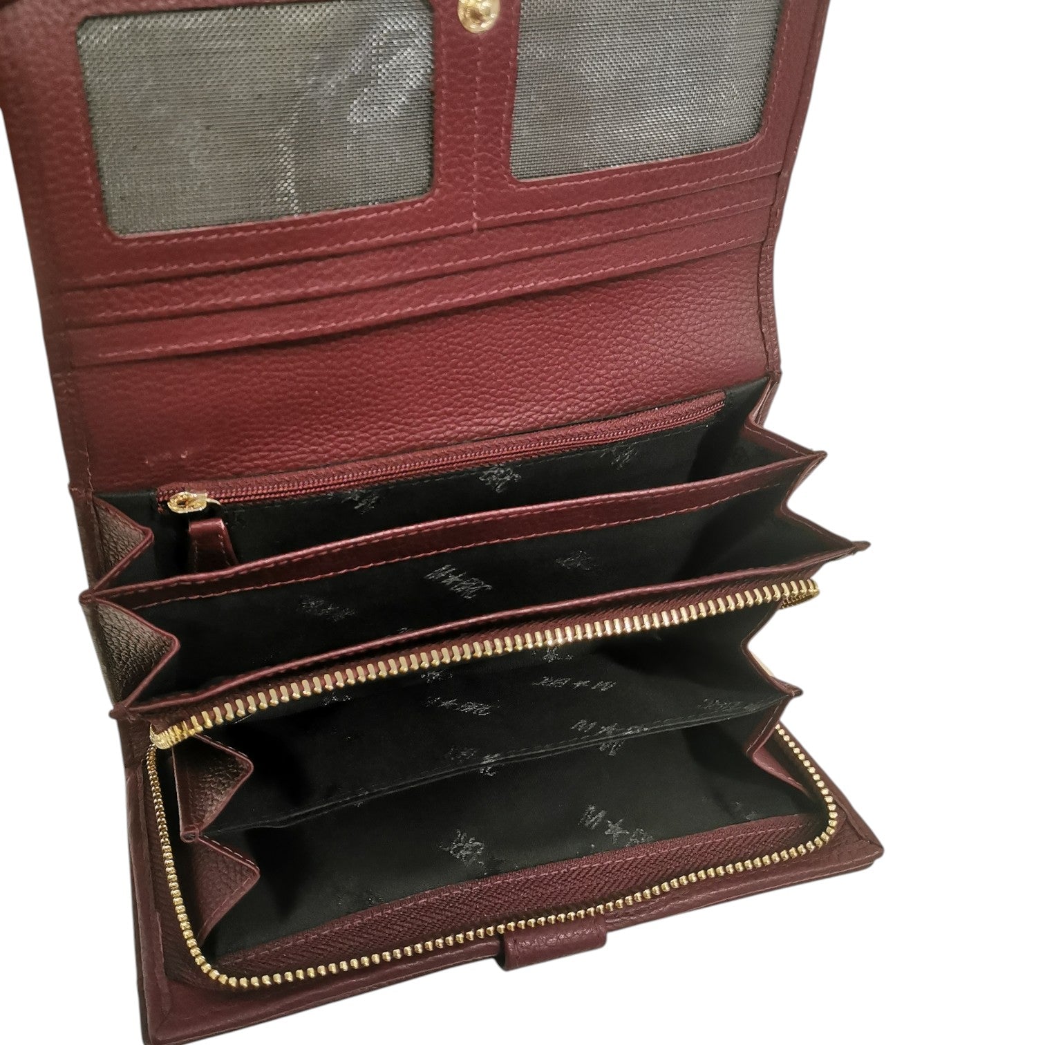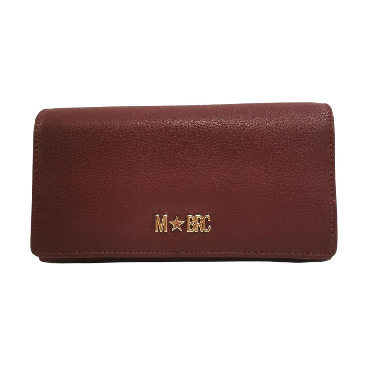 M Brc Portafoglio Donna in Pelle Martellata Bordeaux con Bottone Magnetico e Zip
