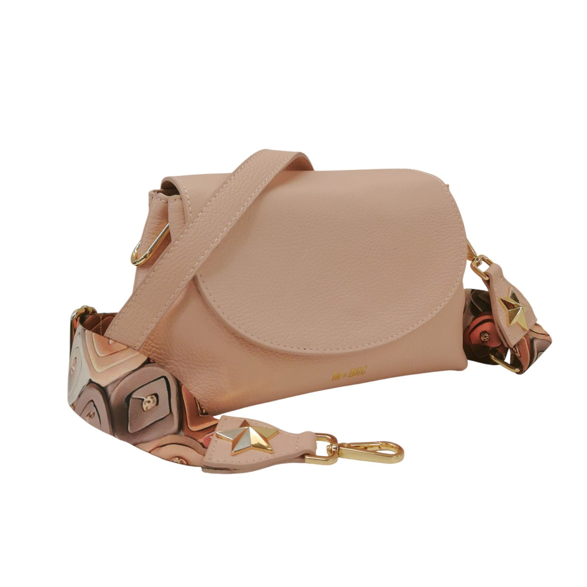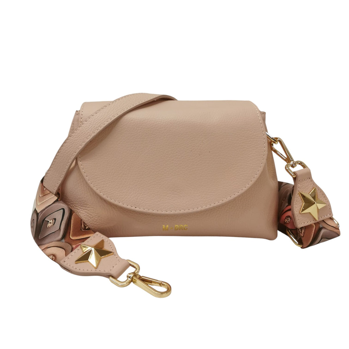 M Brc Tracolla Donna Media Linea Obona in Pelle Martellata Cipria