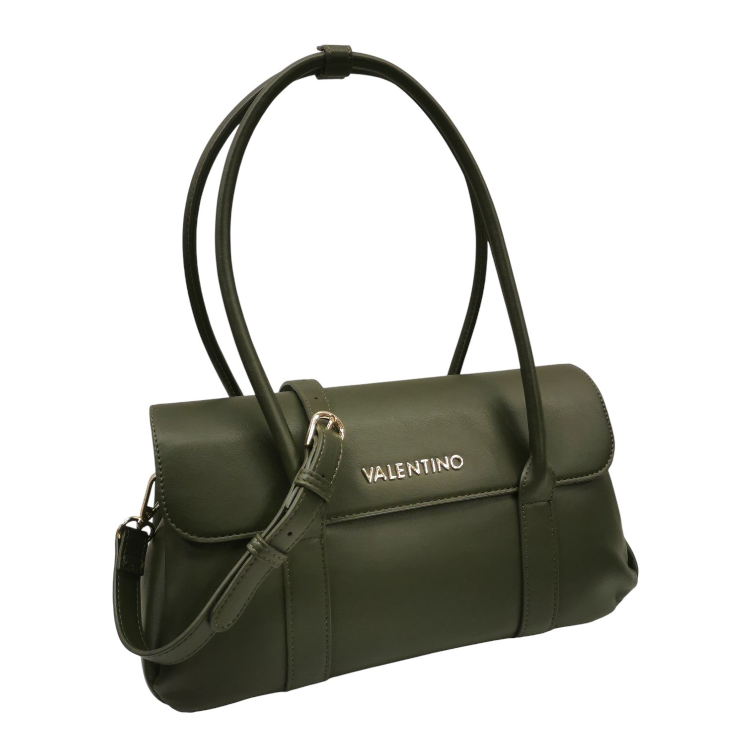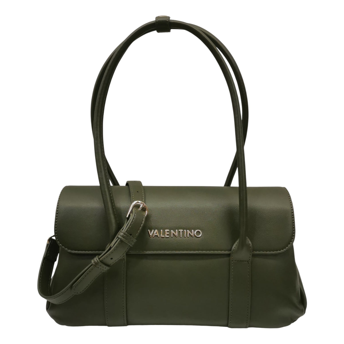 La Borsa a spalla firmata Mario Valentino, realizzata in ecopelle militare strutturata con doppi manici e chiusura a patta, pensata per una comoda indossabilità a spalla. L'interno offre diversi scomparti per organizzare gli oggetti essenziali di tutti i giorni