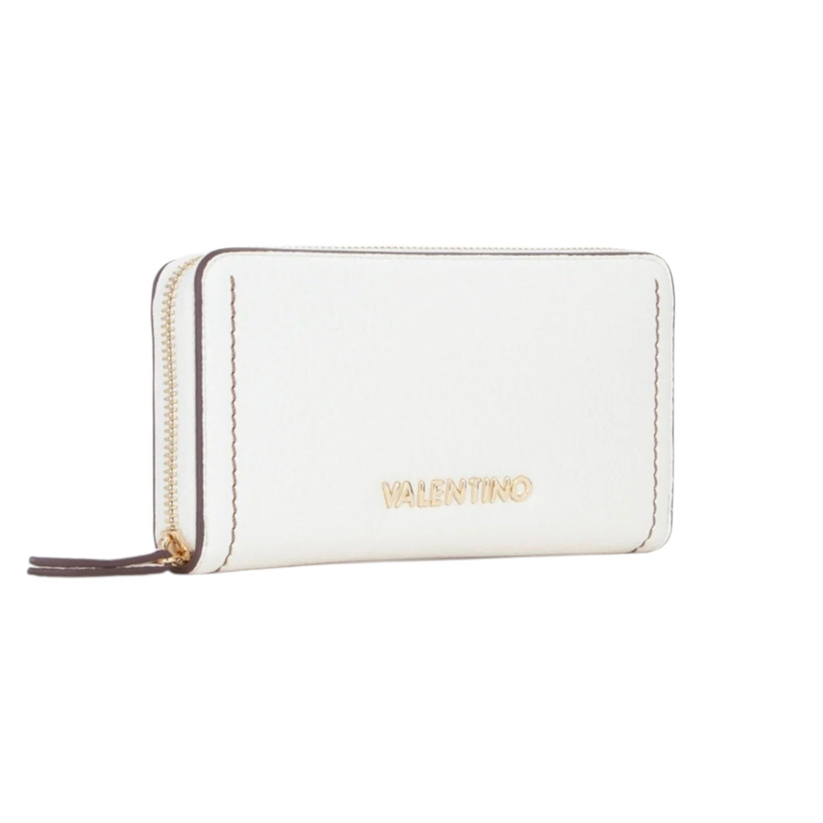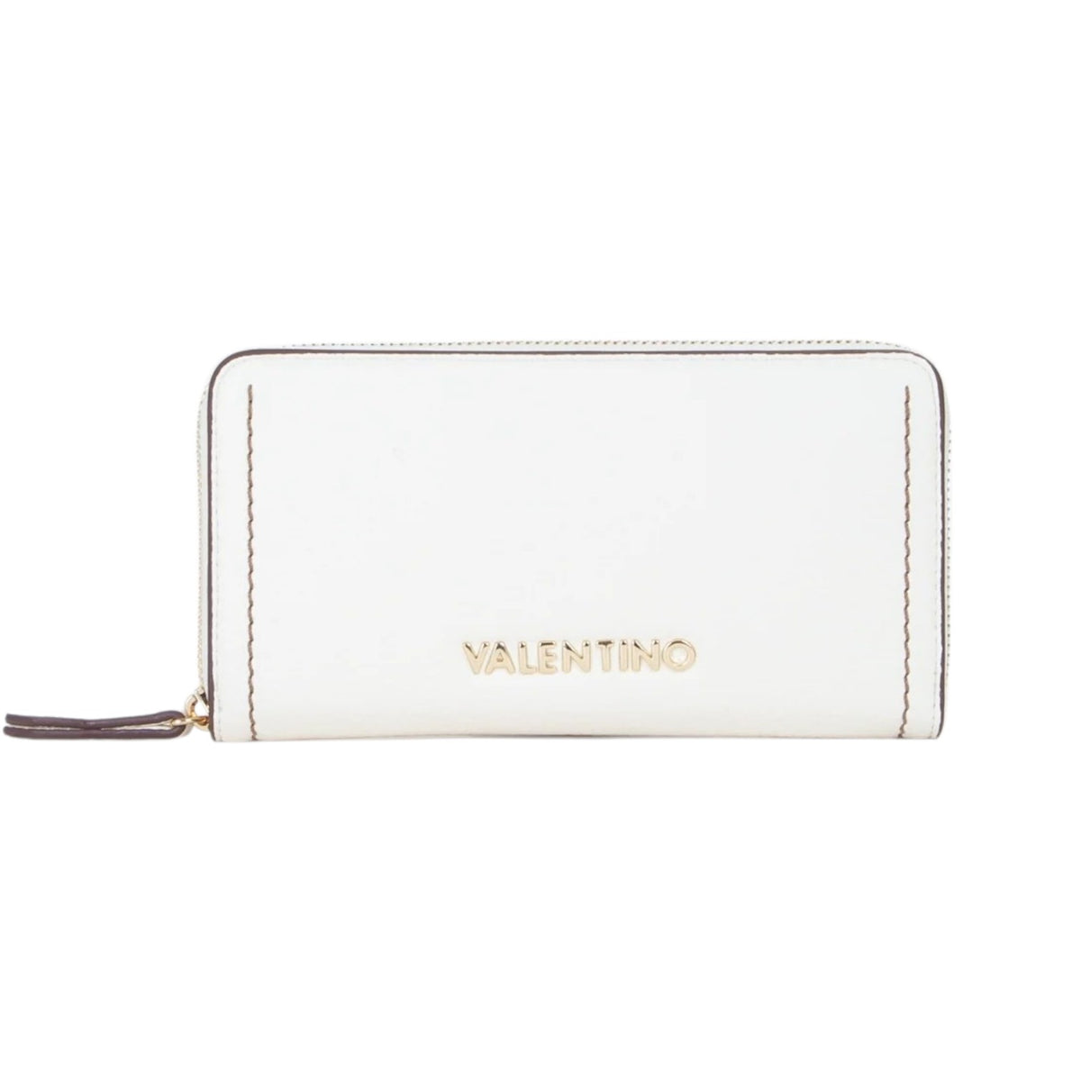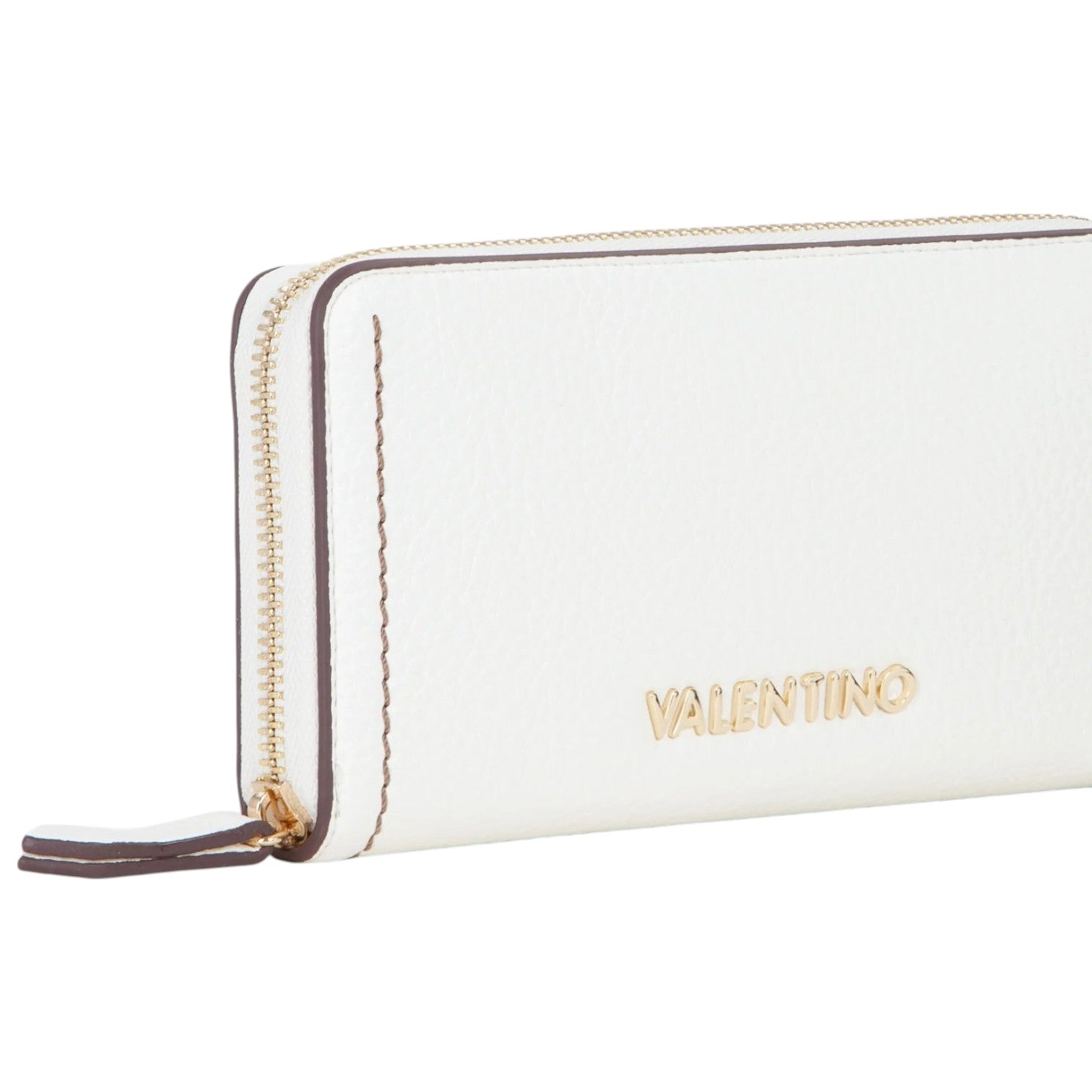 Mario Valentino Portafoglio Grande Zip Around in Pelle Sintetica Bianco con Cuciture a Contrasto
