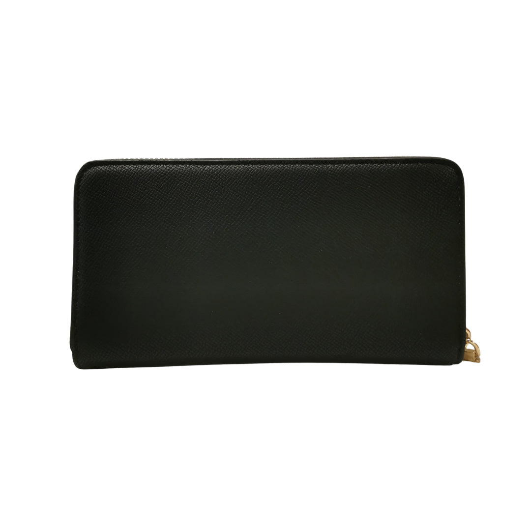 Il portafoglio firmato Mario Valentino Nero, è realizzato in ecopelle ad effetto martellato. Dispone di un'unica zip e un' unico scompartimento, all'interno vi è la tasca per le monete, slots per l'inserimento delle carte e banconote. Elegante, pratico ad uso quotidiano.