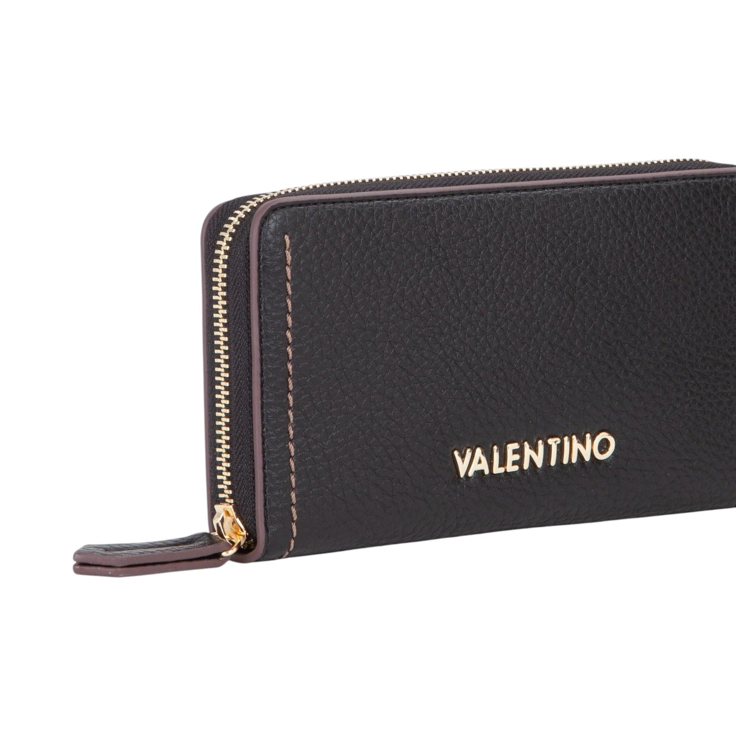Mario Valentino Portafoglio Grande Donna Nero con Cuciture a Contrasto e Zip
