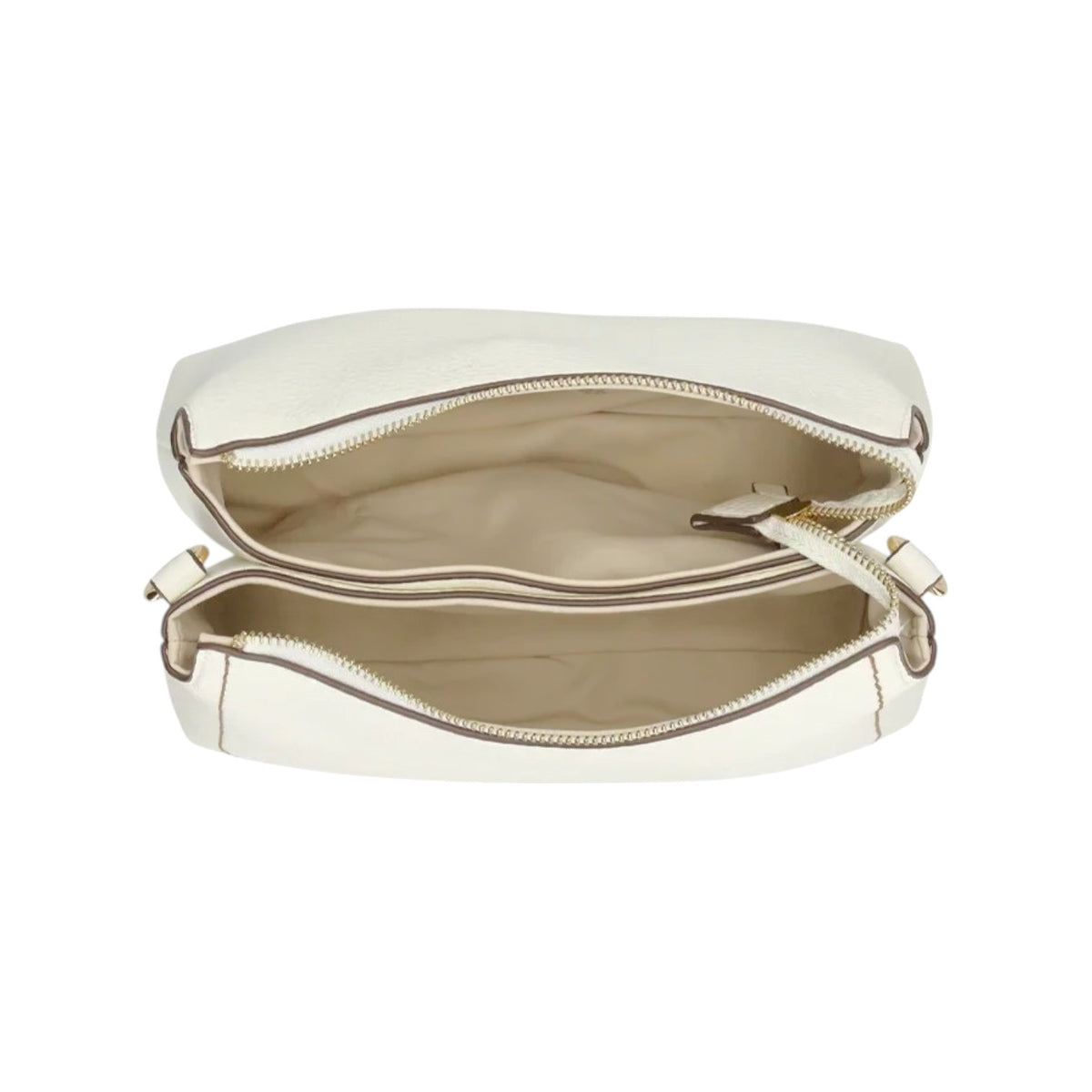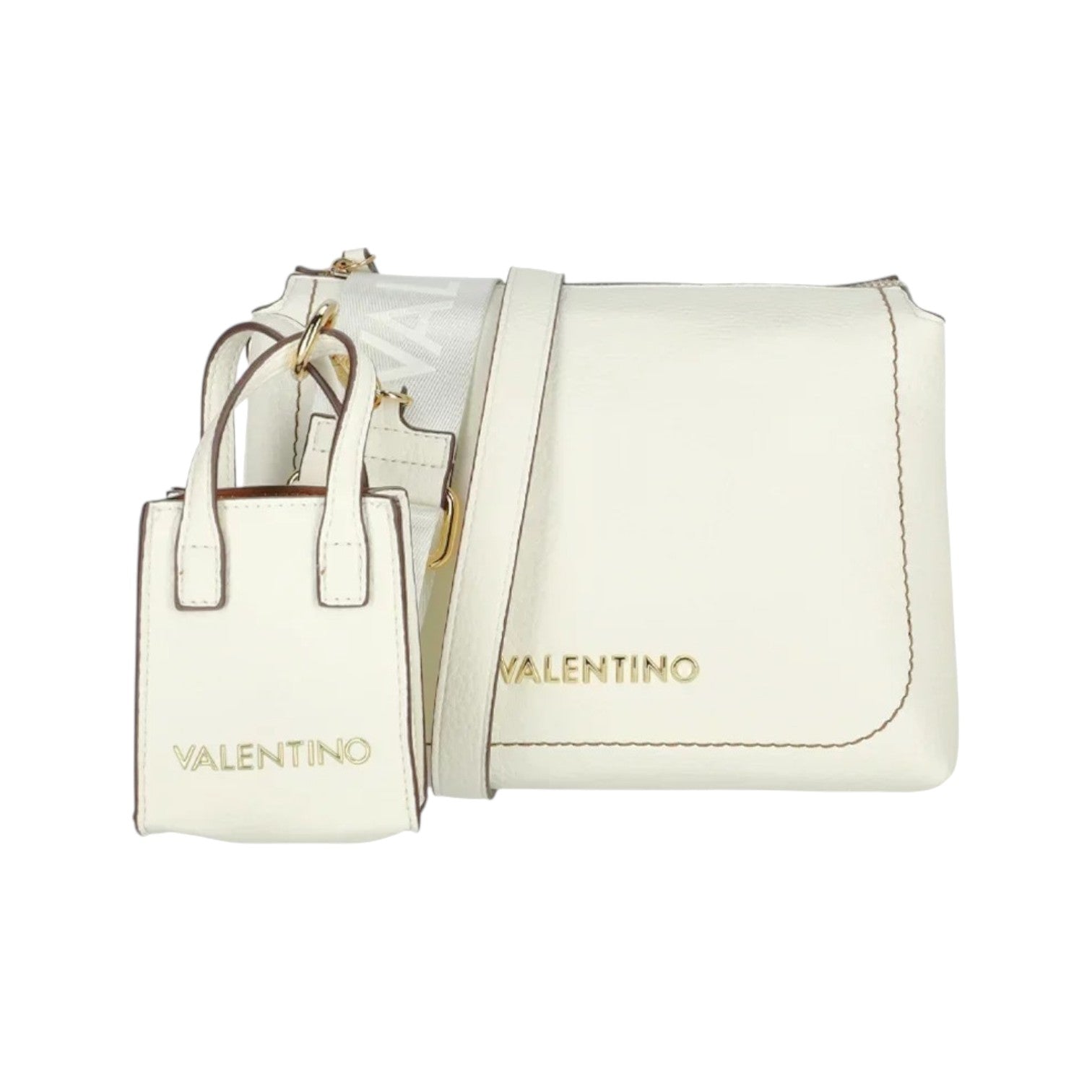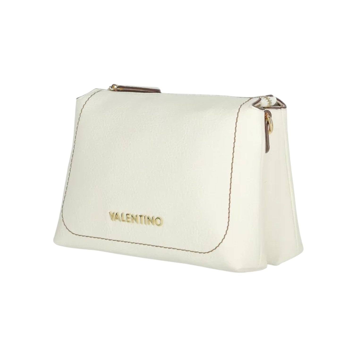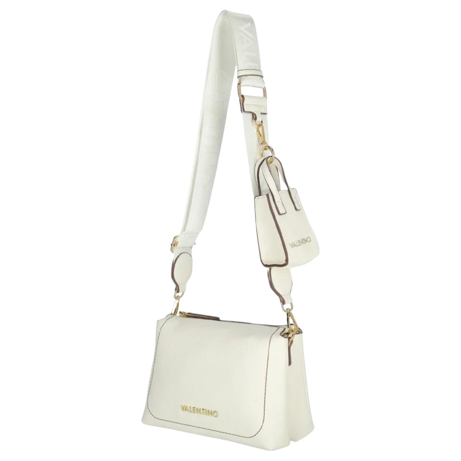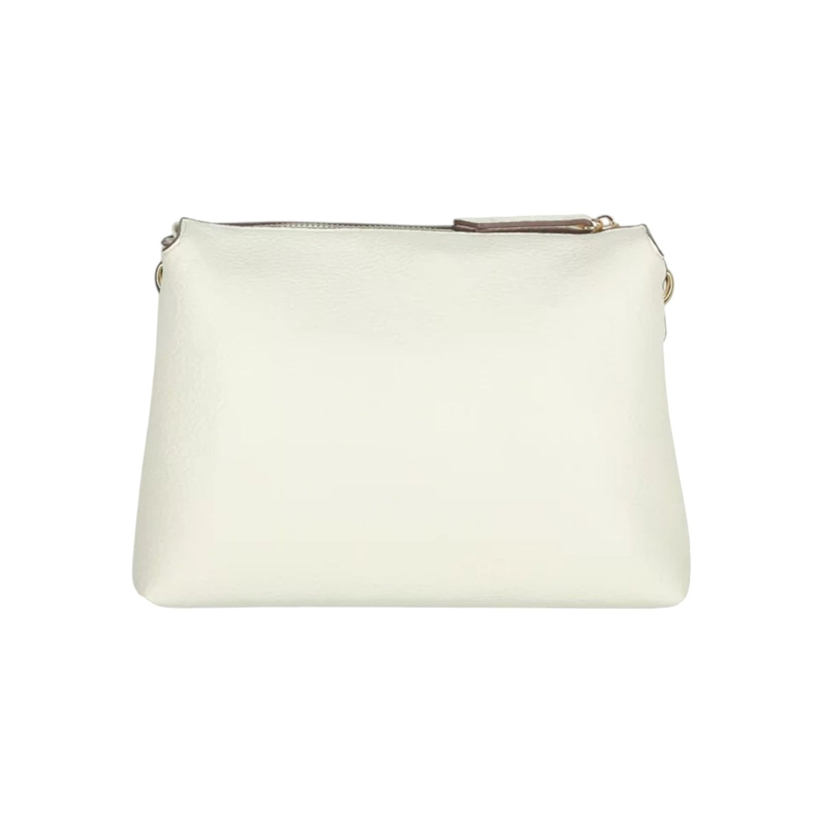 Mario Valentino Borsa a Tracolla Donna con 3 Scomparti in Colore Bianco con Cuciture a Contrasto e Portachiavi Accesssorio Frontale