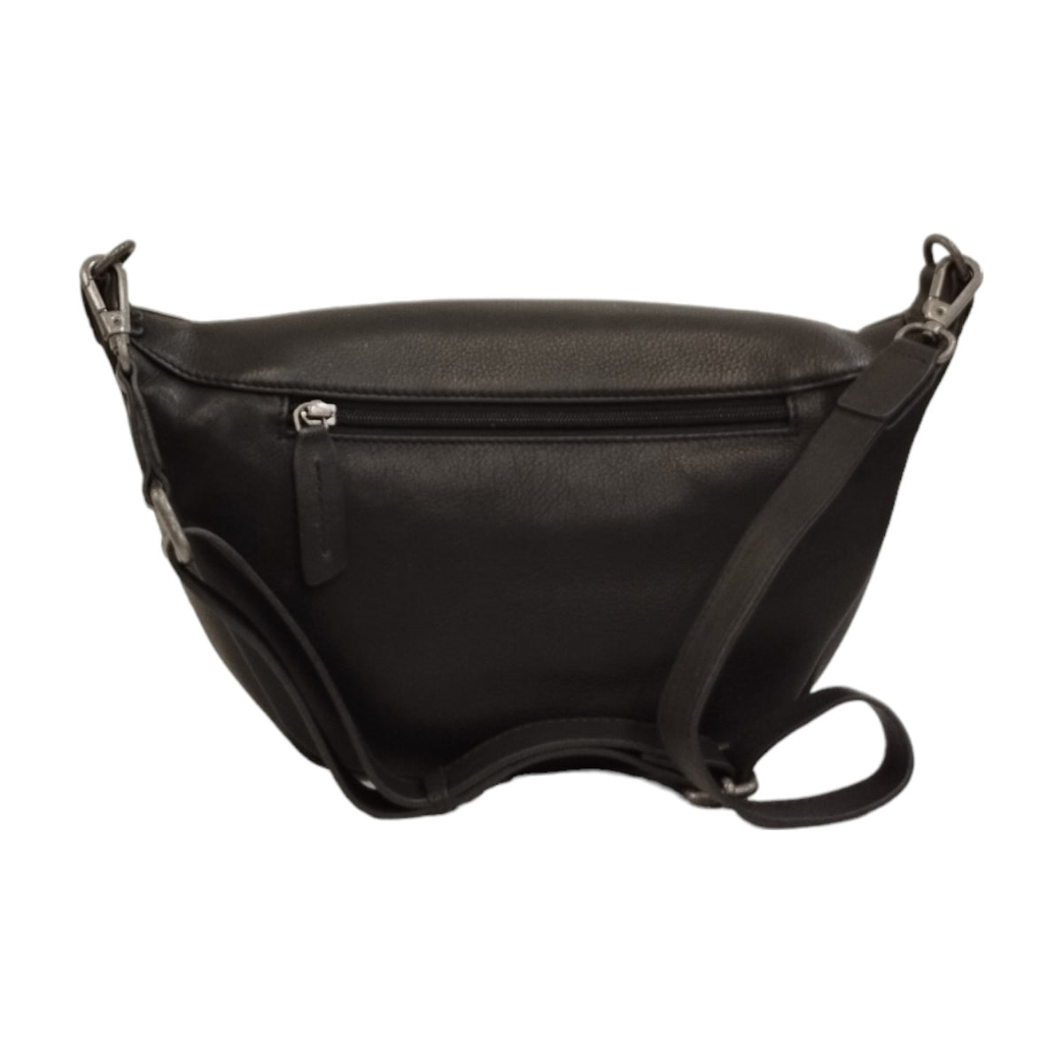Il Marsupio firmato Gianni Conti, realizzata in pelle martellata è caratterizzato da doppia tasca con zip una sul retro e una frontale, l'interno è foderato in tessuto di cui possiede una tasca con zip e tracolla regolabile e removibile.