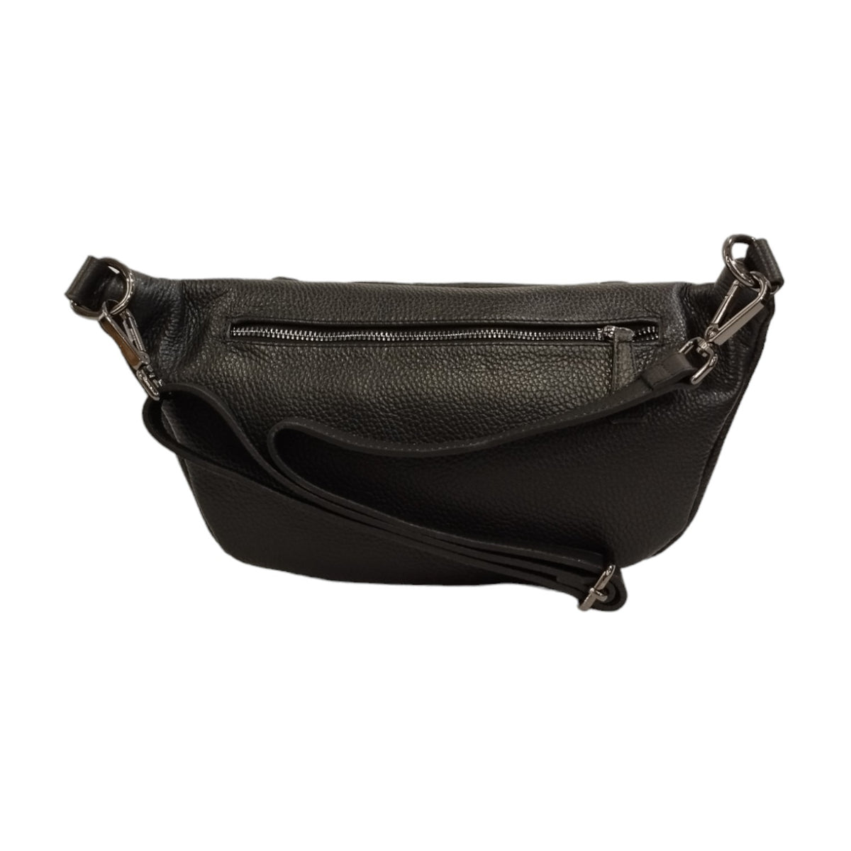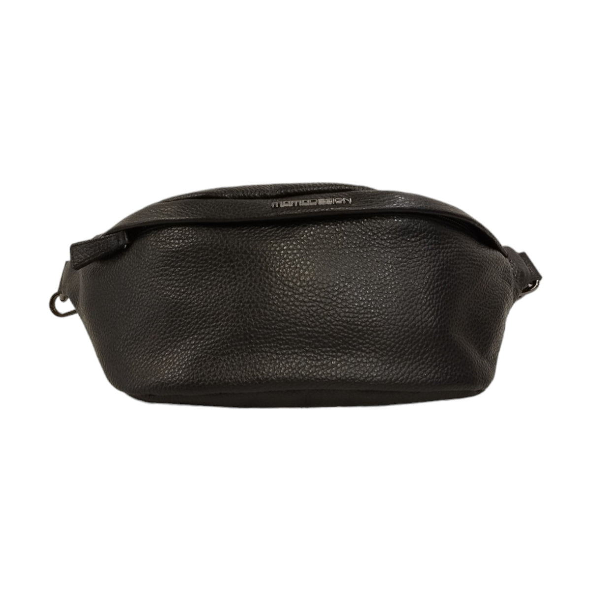 Il Marsupio firmato Momo Design, realizzato in pelle martellata è caratterizzato da tracolla regolabile, e da tasca con zip sul retro, l'interno è foderato in tessuto con una pratica chiusura con zip.