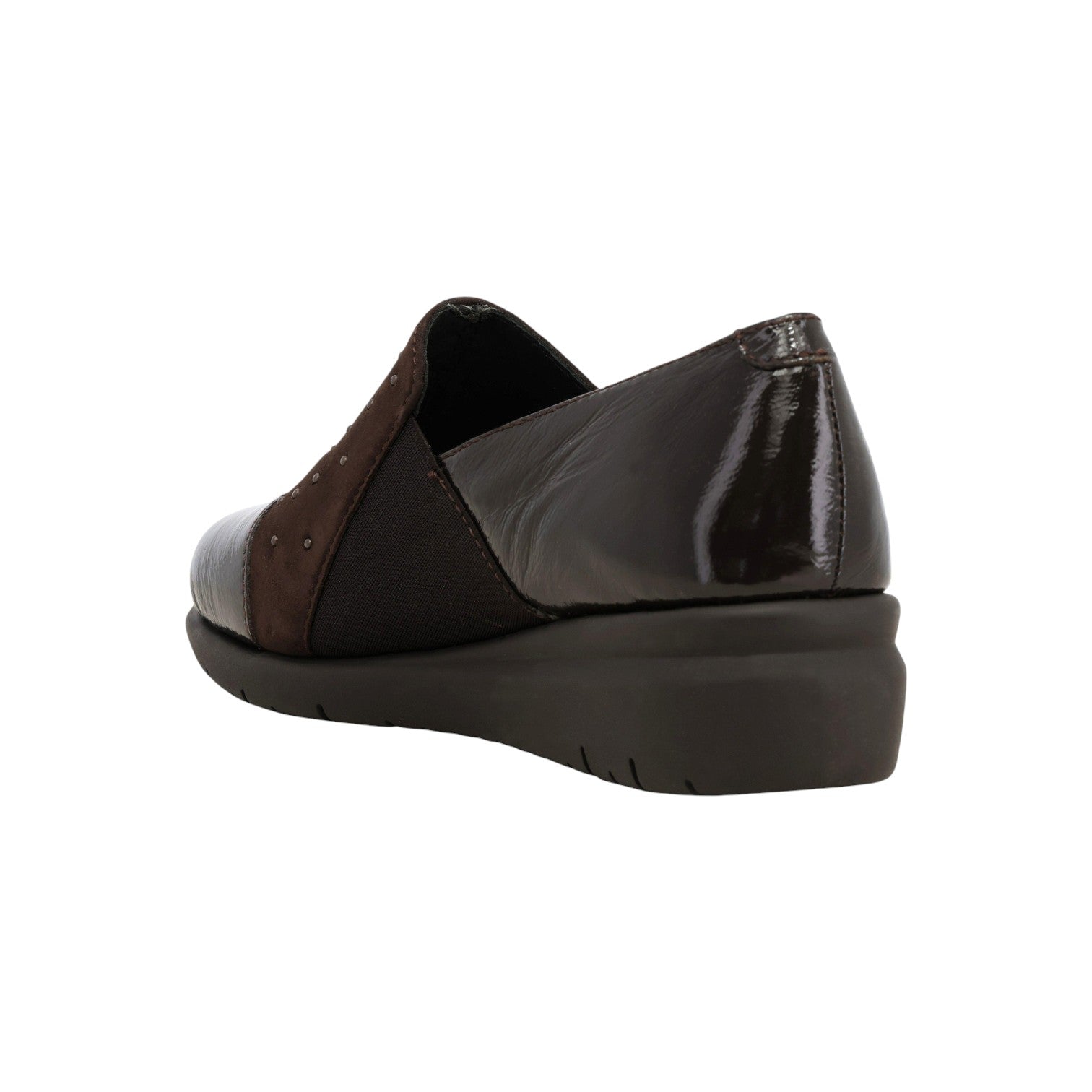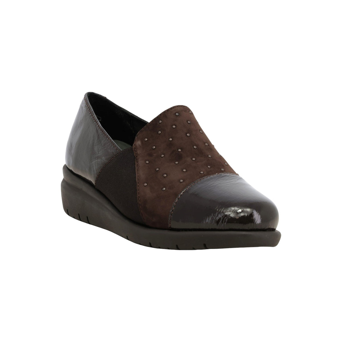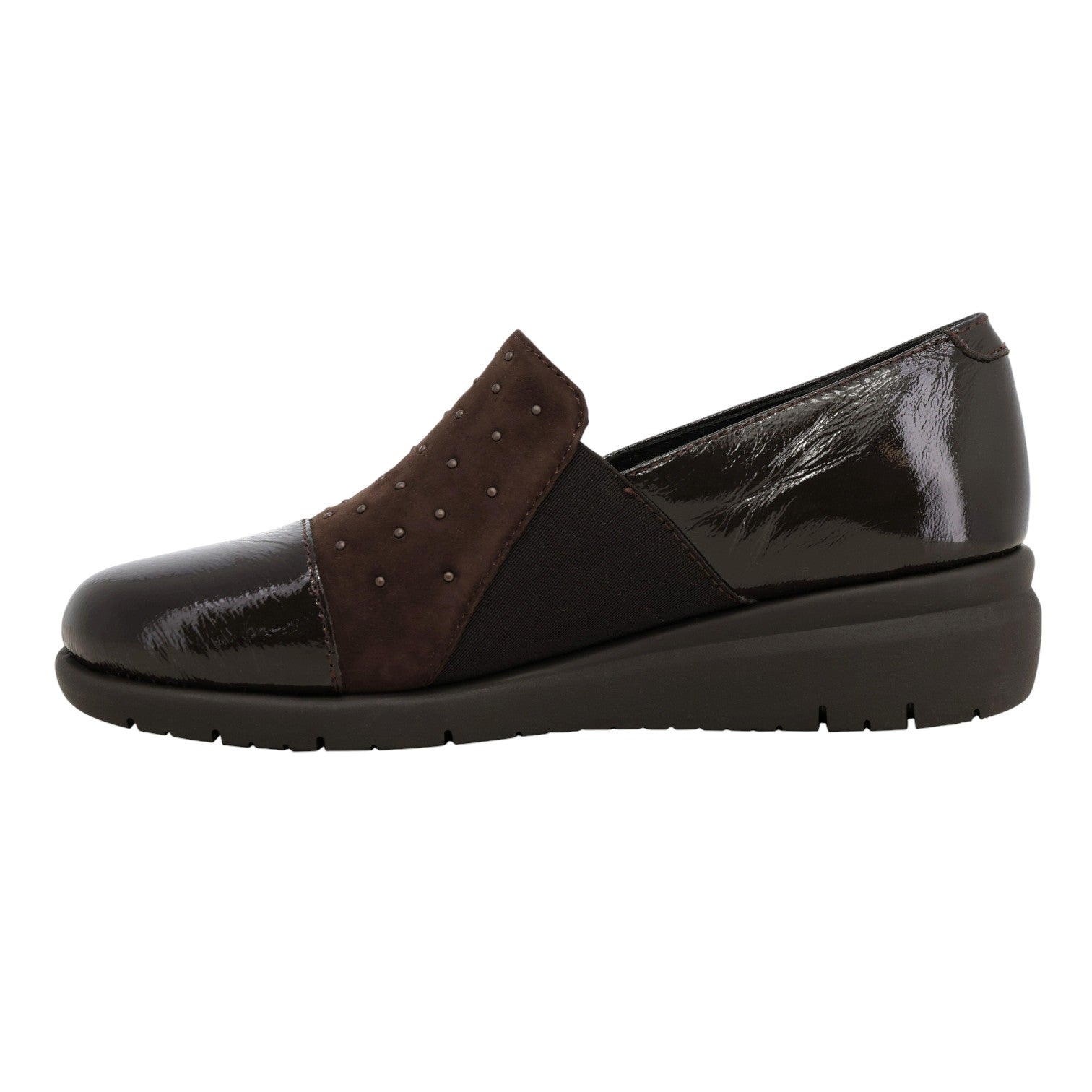 Melluso Mocassino Donna in Camoscio e Vernice Moro con Strass e Zeppa