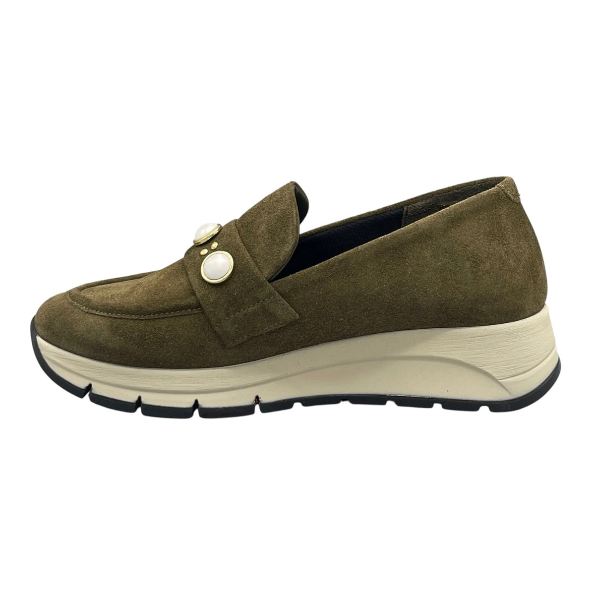 Melluso Mocassino Donna in Pelle Scamosciata Verde con Zeppa Alta 40mm