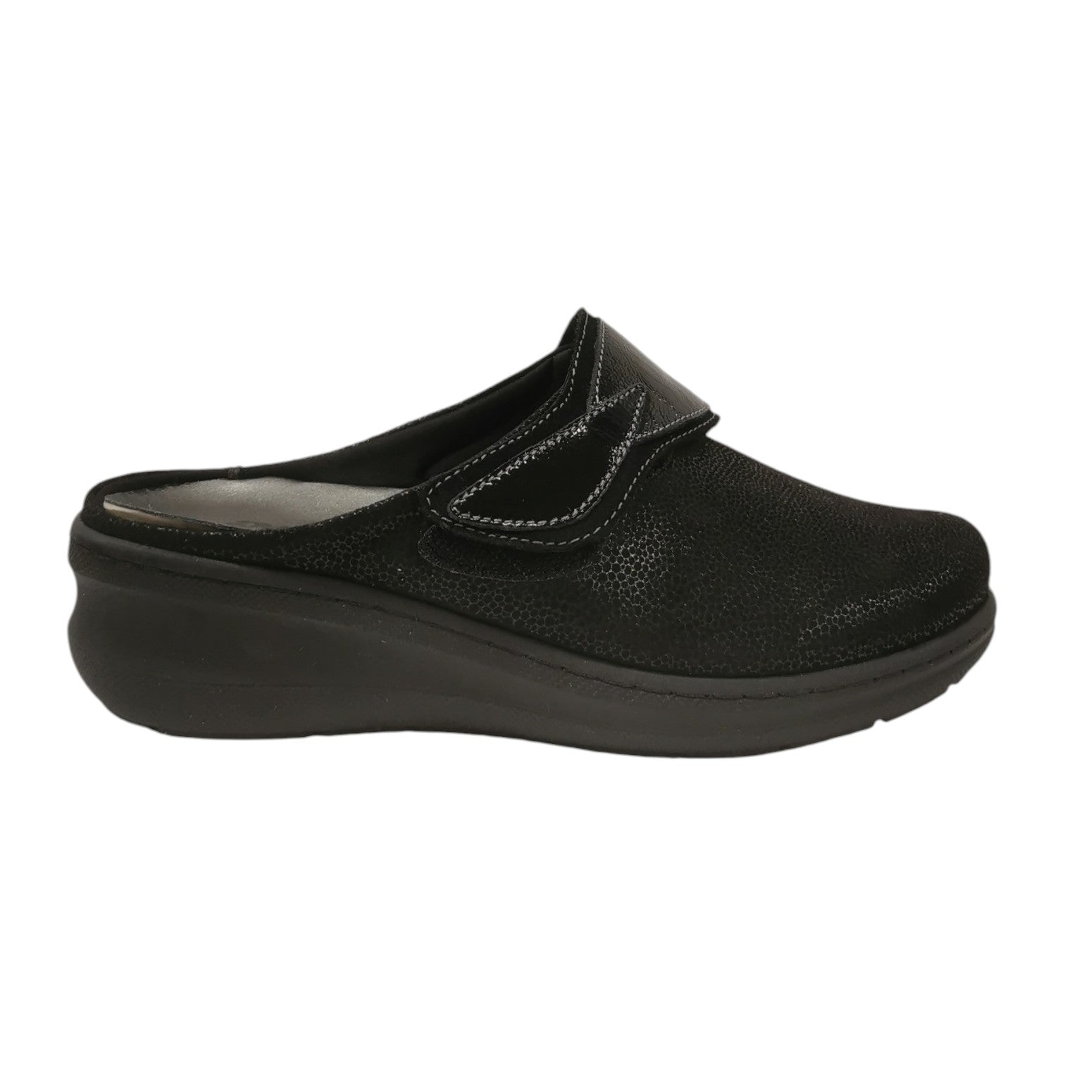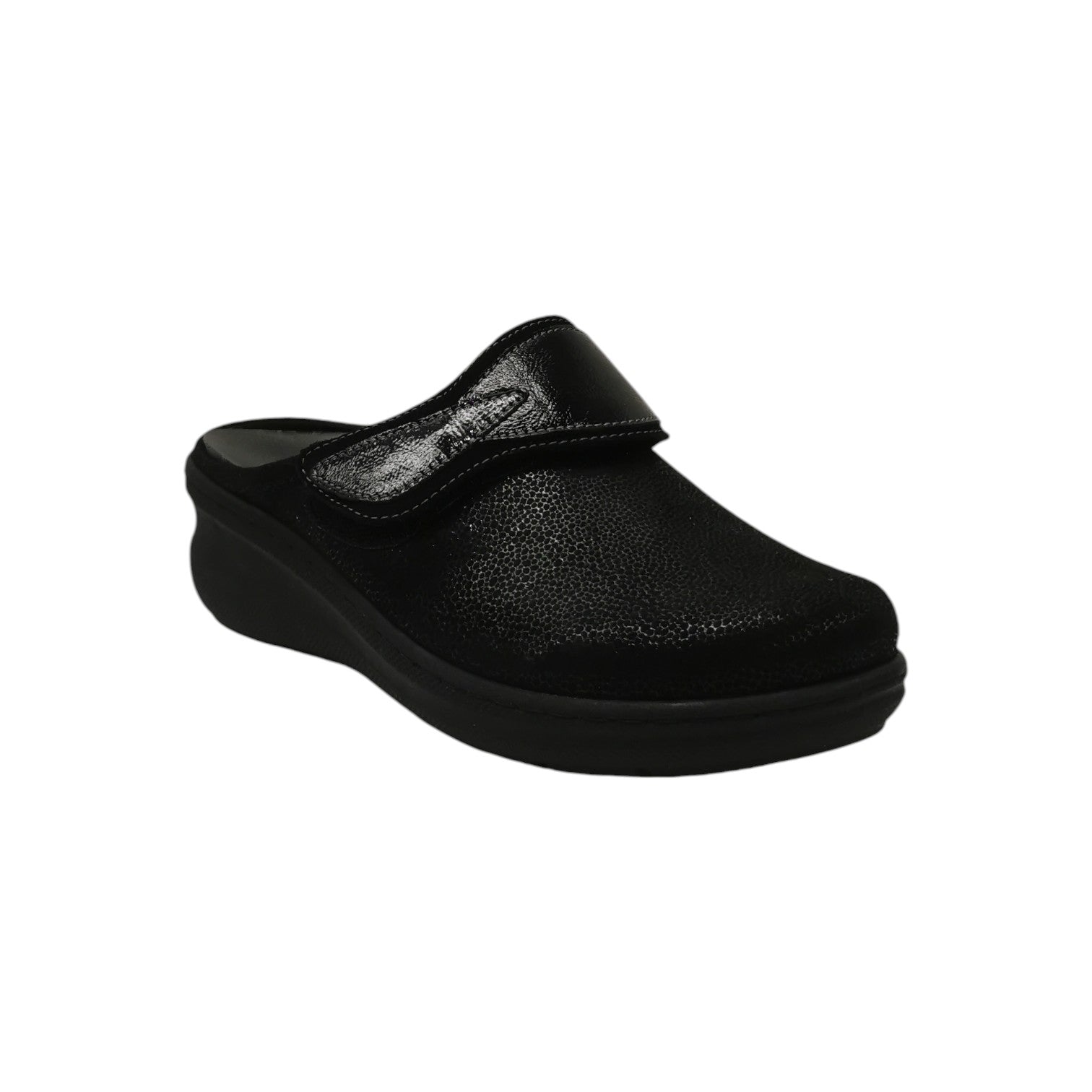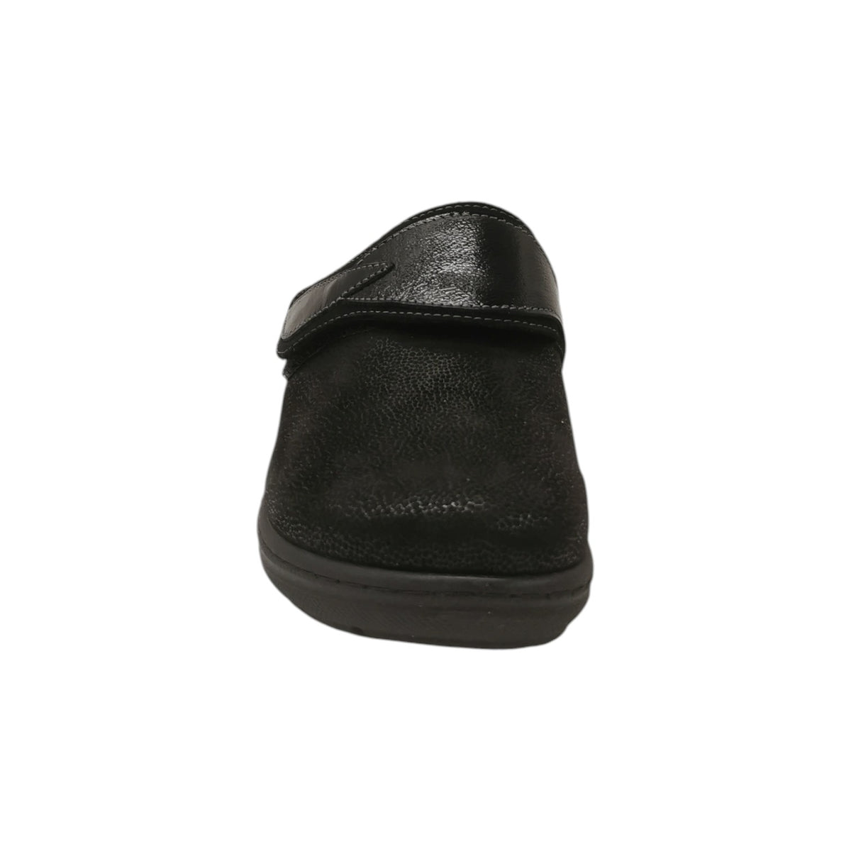 La Pantofola firmata Melluso, realizzata in tessuto con tomaia elasticizzata adatta per chi soffre di alluce valgo, e strappo per regolare bene il collo del piede, il plantare è anatomico e estraibile.