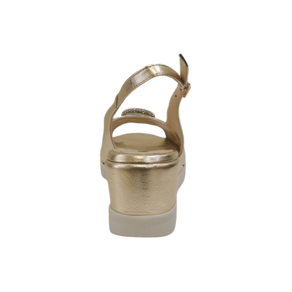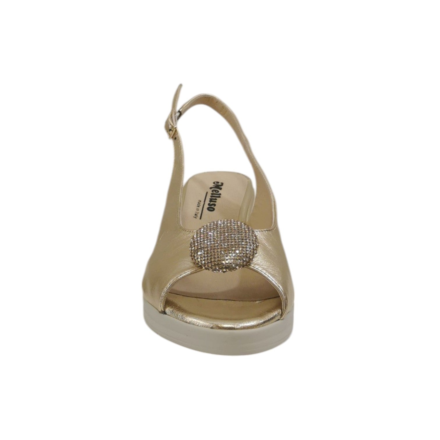 Melluso Sandalo Donna in Pelle Oro Laminato con Accessorio Gioiello