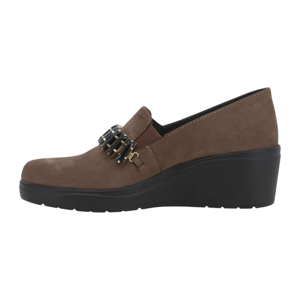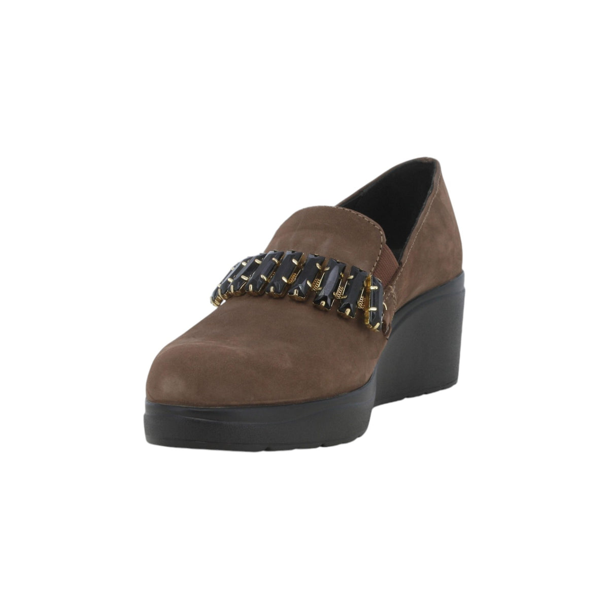 Melluso Mocassino Donna in Camoscio Marrone con Zeppa e Accessorio Gioiello