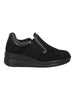 Melluso Mocassino Donna in Camoscio Nero con Zeppa e Strass