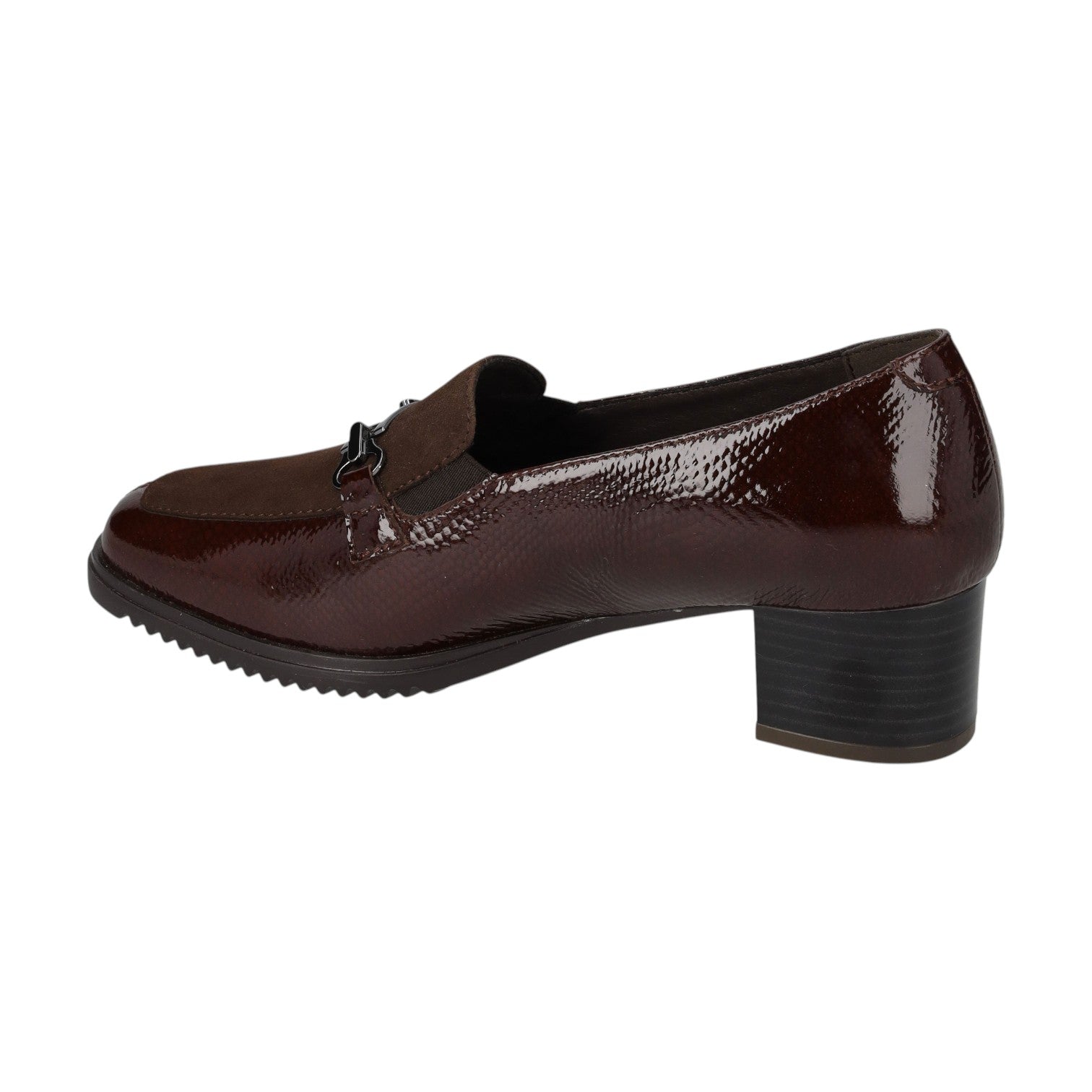 Valleverde Mocassino Donna in Camoscio e Vernice Caffè con Tacco Largo Alto 40mm
