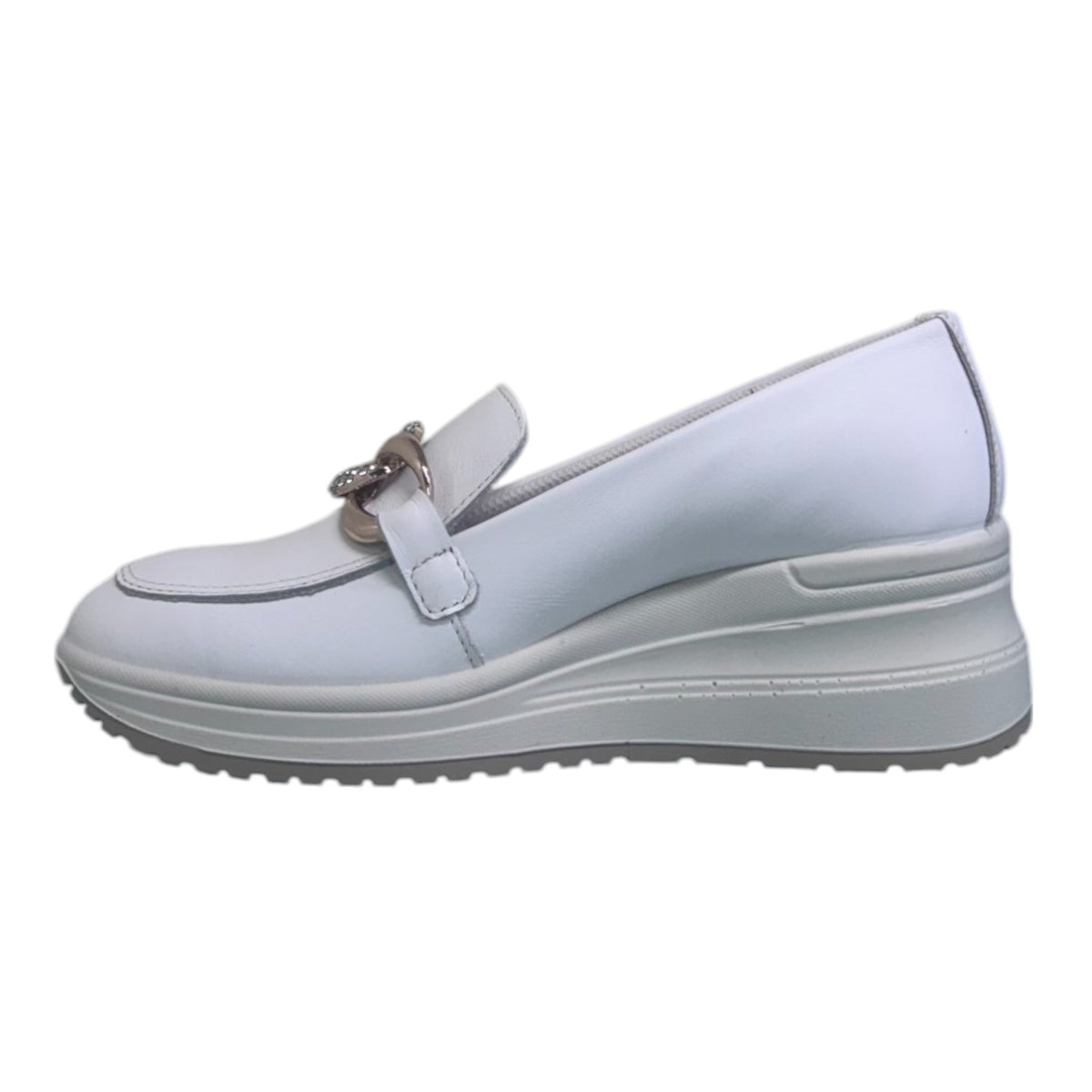 Enval Soft Mocassino Bianco in Pelle con Zeppa e Catena da Donna