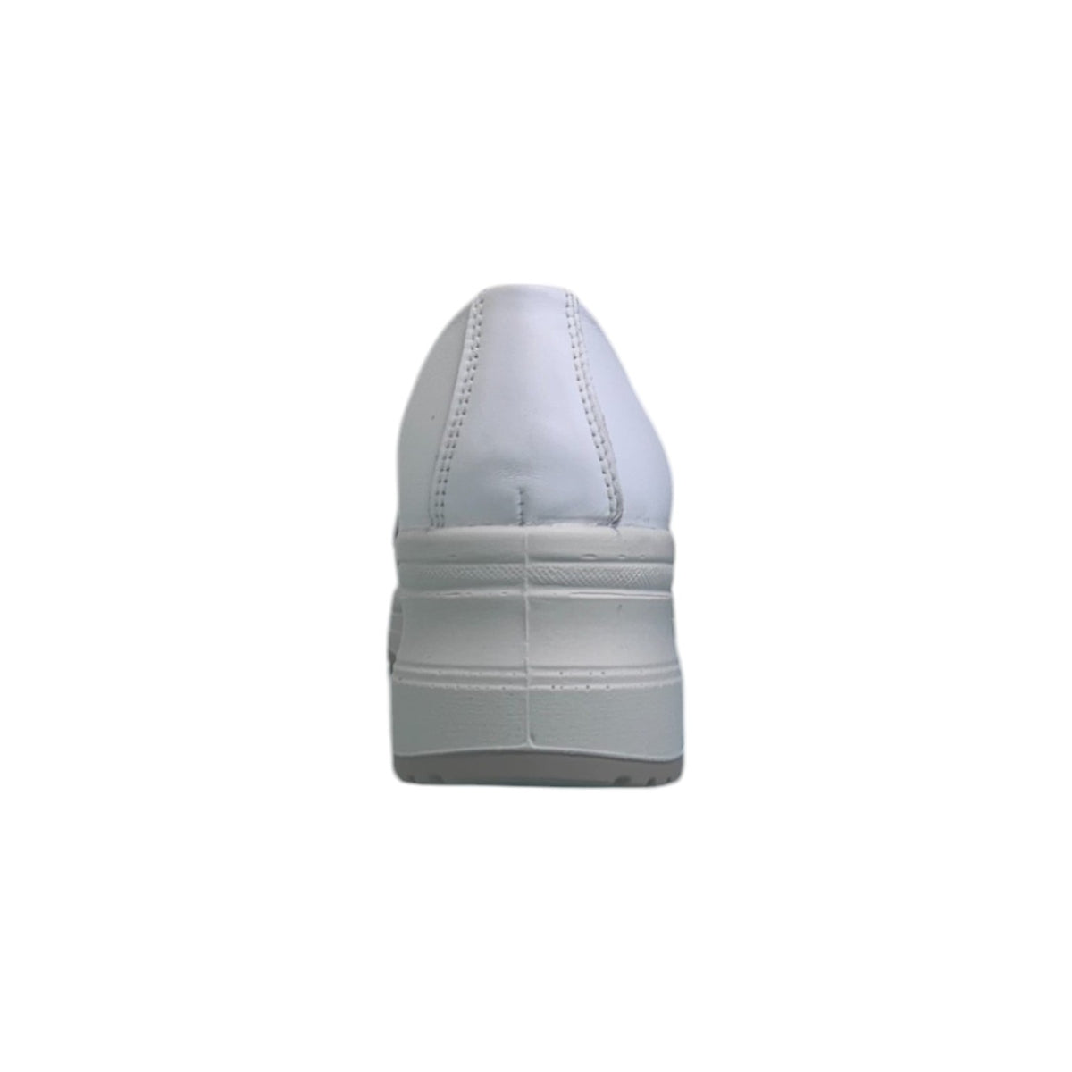 Il Mocassino firmato Enval Soft, realizzato in morbida pelle bianca è caratterizzato da catena dorata con applicazione di strass sul davanti e da fodera in tessuto con sottopiede in pelle memory foam estraibile, la zeppa è alta 5cm con fondo in gomma.
