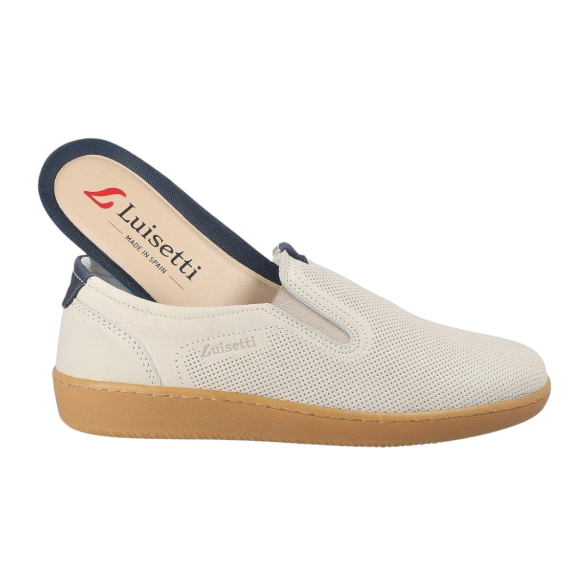 Luisetti Mocassino Uomo in Nabuck Traforato Crema con Elastici Laterali