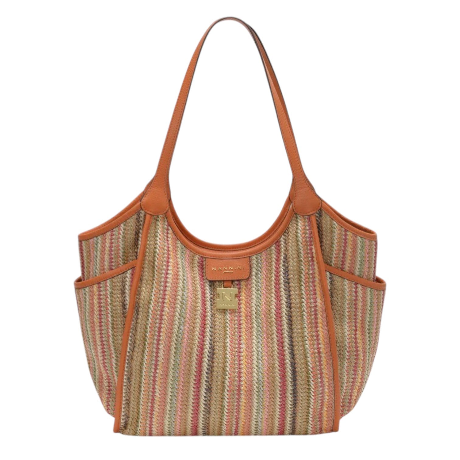 Nannini Firenze Borsa a Spalla Donna Linea Siria-G in Pelle e Raffia Arancio con Doppio Manico