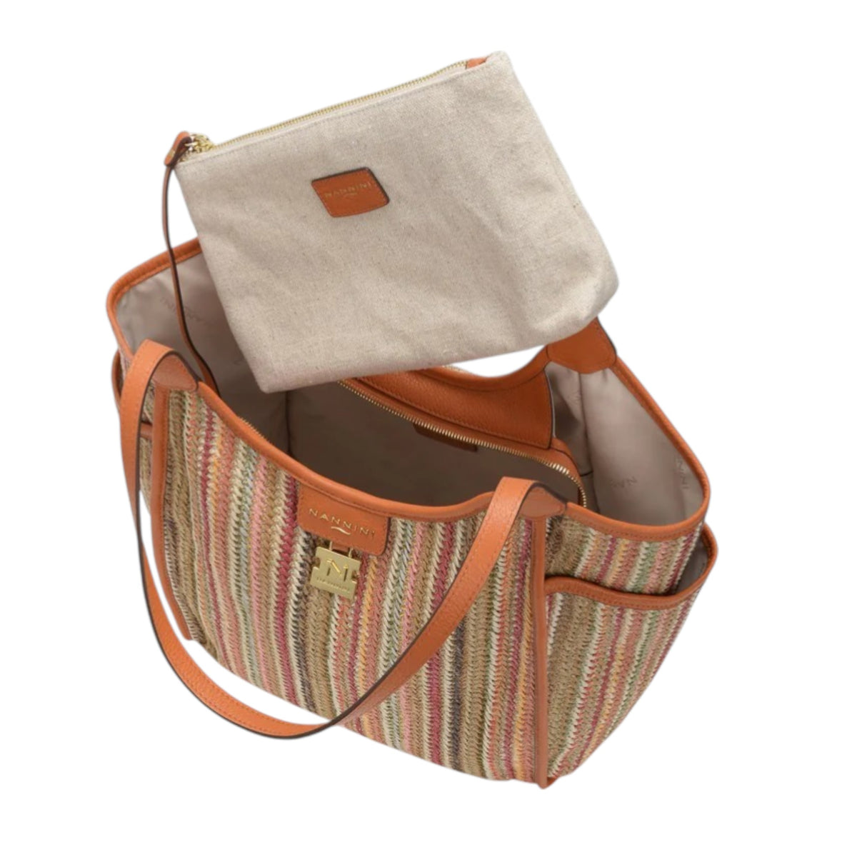 La Borsa a spalla firmata Nannini Firenze, della Linea Siria-G realizzata in pregiato tessuto raffia e pelle, perfetta per chi ricerca praticità senza compromessi stilistici. La chiusura con zip garantisce sicurezza ai tuoi effetti personali, mentre le tasche laterali funzionali offrono accesso rapido agli oggetti essenziali. Completa di pochette interna rimovibile in tessuto e rivestimento interno logato che riflette l'attenzione Nannini ai dettagli. Un accessorio elegante e funzionale per la quotidianità.