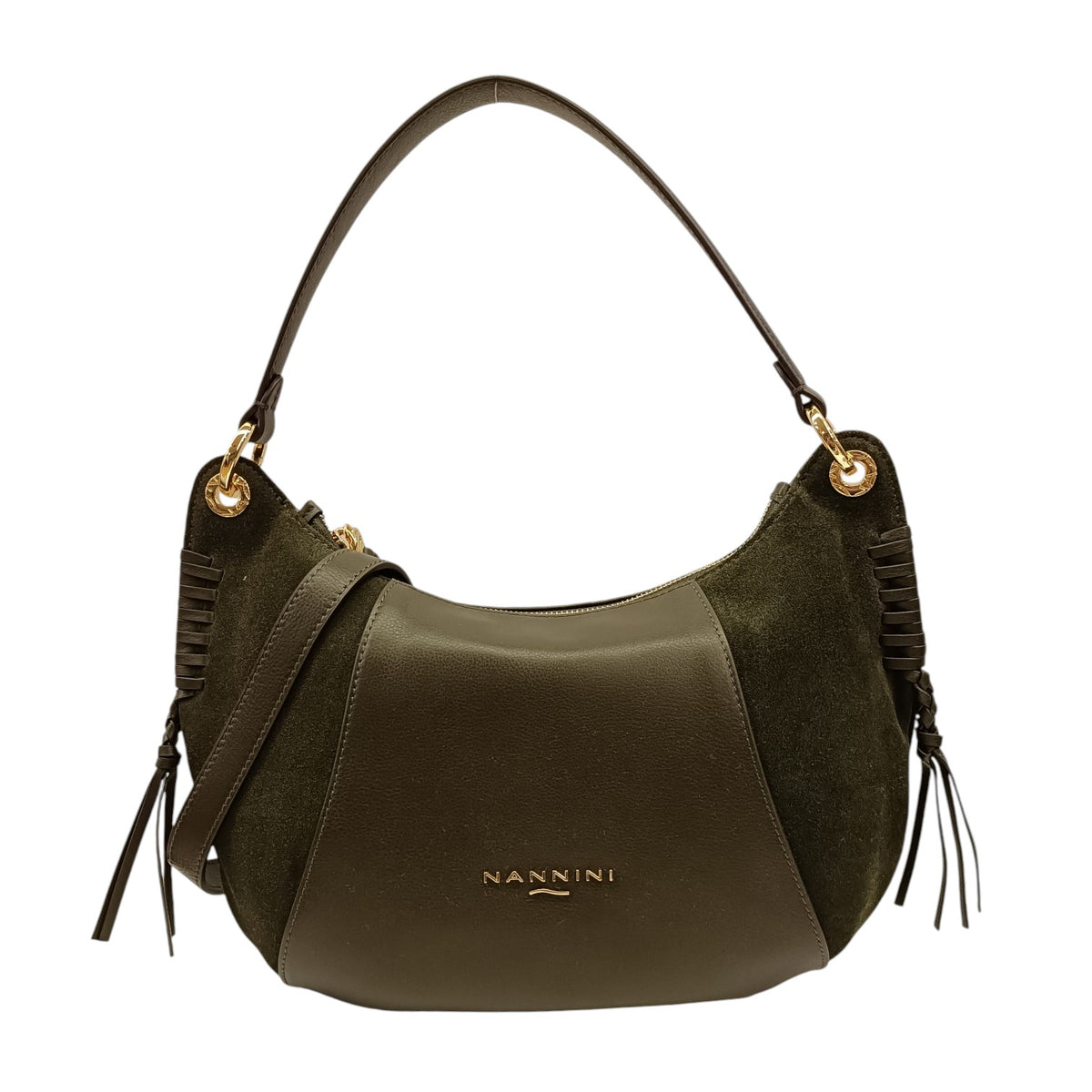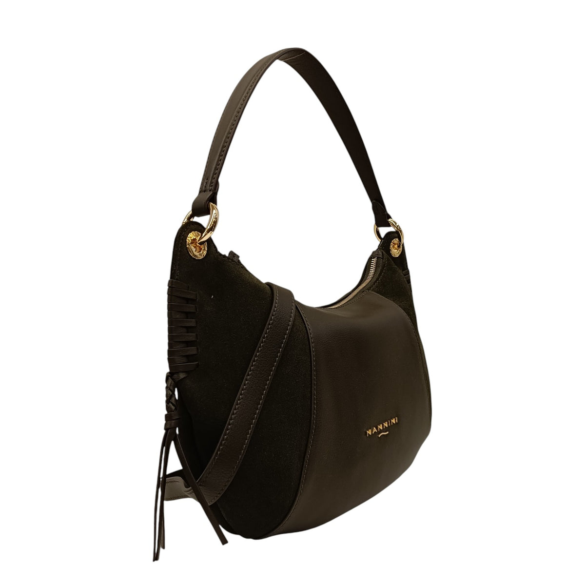 Nannini Firenze Borsa a Spalla Media Linea Eva Donna in Pelle e Camoscio Bottiglia con Tracolla