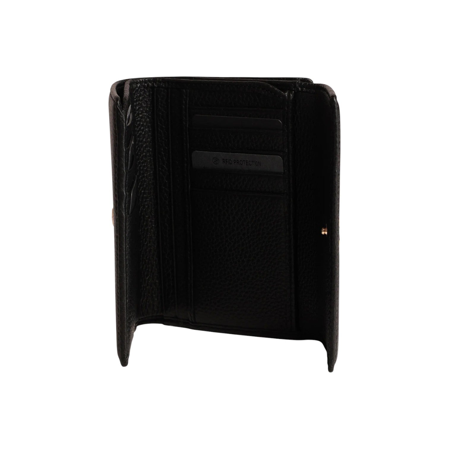 Il Portafoglio firmato Nannini Firenze, della Linea Wallis realizzato in pelle nera è caratterizzato da una lavorazione martellata e da 10 scomparti portatessere e da scomparto per banconote, e con portamonete esterno.