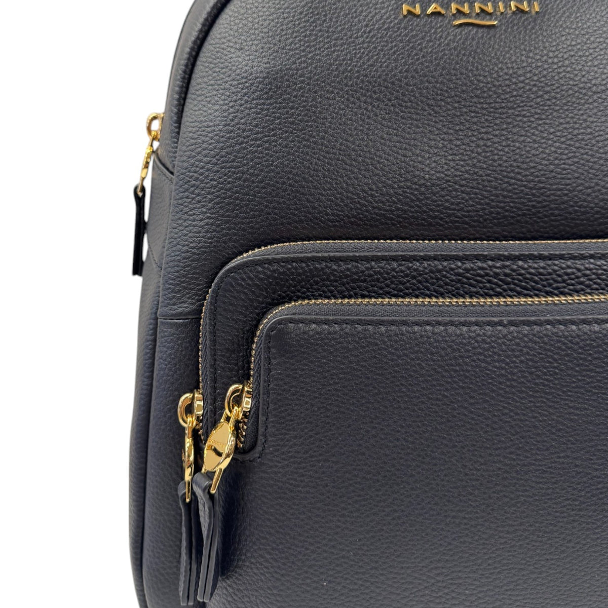 Nannini Firenze Zaino Tiziana Donna in Pelle Blu con Doppia Tasca Frontale