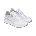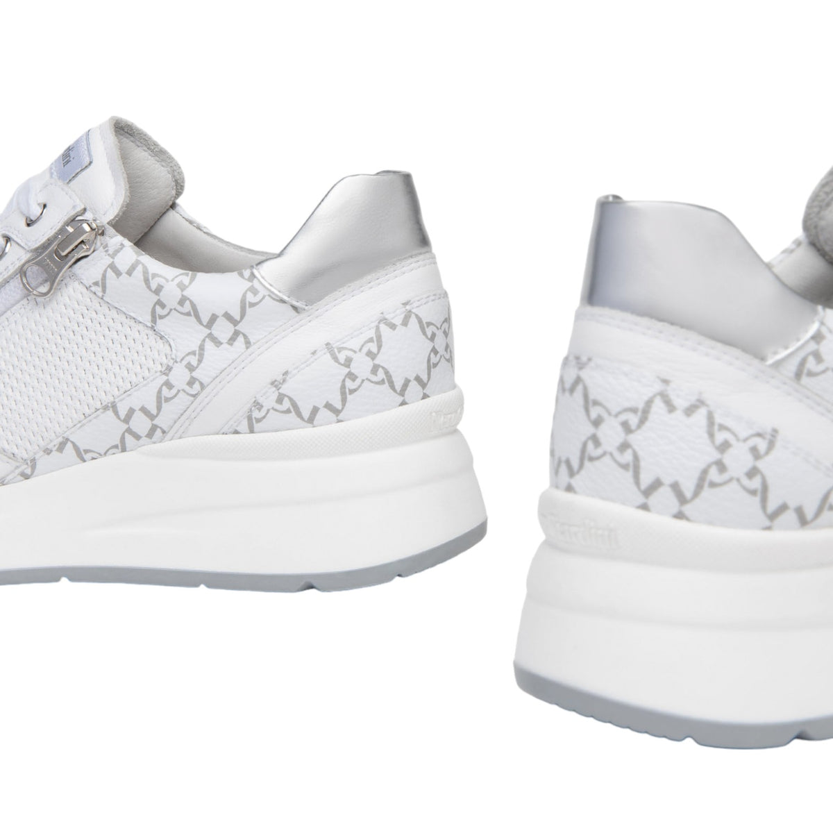 La Sneakers firmata Nero Giardini, realizzata in pelle e tessuto di qualità superiore, sia all'esterno che all'interno, garantisce una morbidezza senza confronti ad ogni passo. Il design unico presenta una stampa logata e un tacco a zeppa moderato da 3,5cm con una comoda cerniera, che unisce praticità e un tocco alla moda.