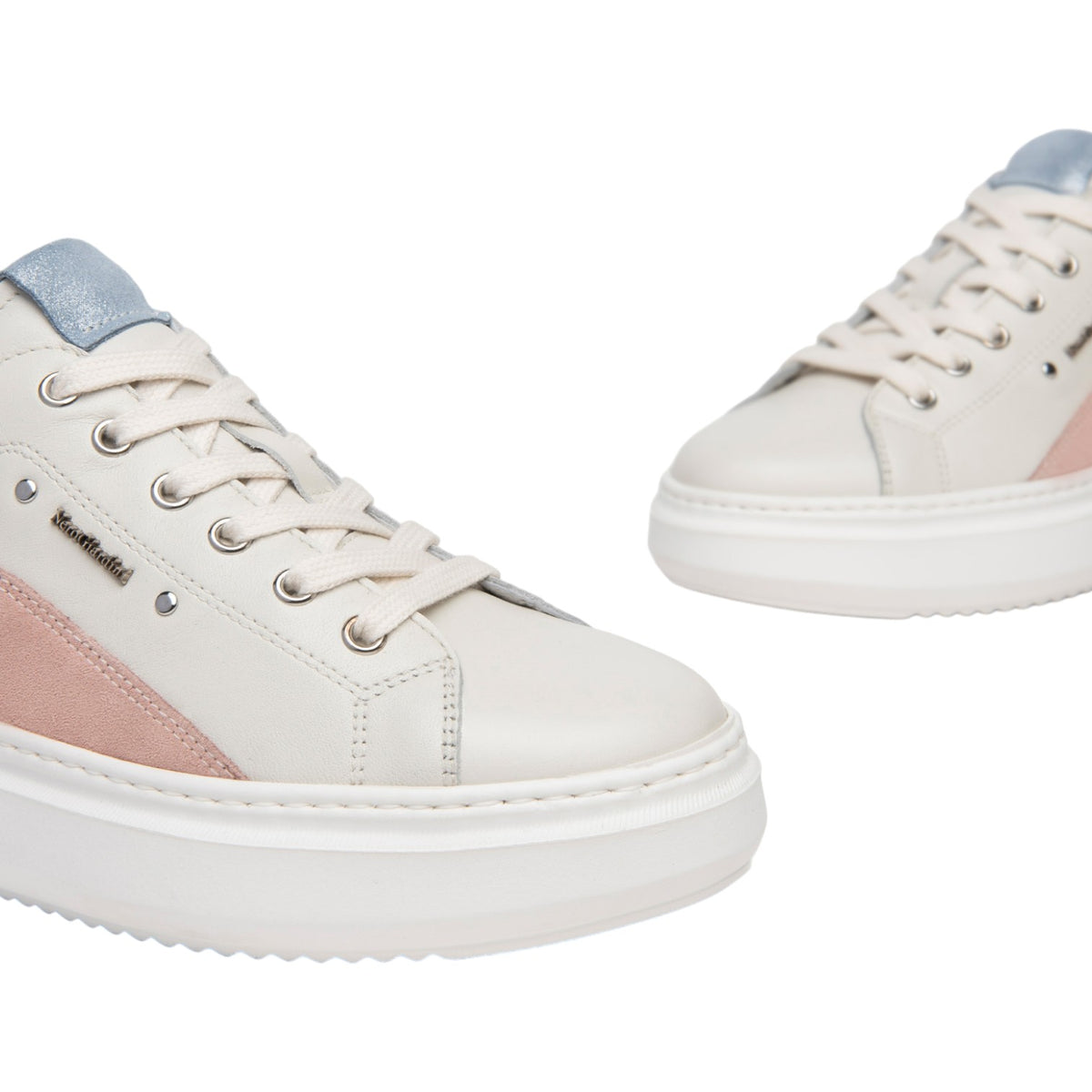 La Sneakers firmata Nero Giardini, caratterizzata da un design contemporaneo con tomaia realizzata in pelle bianca valorizzata dagli inserti in camoscio a contrasto, dispone di logo con scritta laterale in rilievo, e da interno foderato in morbida pelle con soletta estraibile, suola alta 4cm con battistrada antiscivolo e durevole.