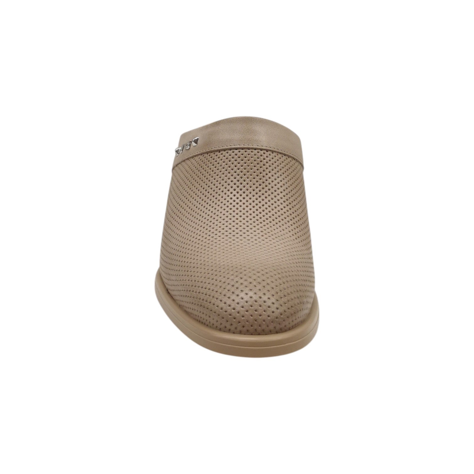 Il Sabot firmato Nero Giardini, modello di tendenza realizzato in pelle nella variante champagne, è caratterizzato da inserti forati e logo NG in metallo laterale. Presenta il tacco effetto legno alto 8cm comodo e pratico.