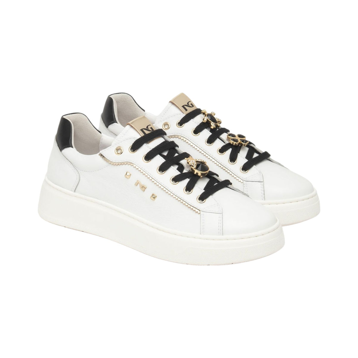 Nero Giardini Sneakers Donna in Pelle Bianca con Charm